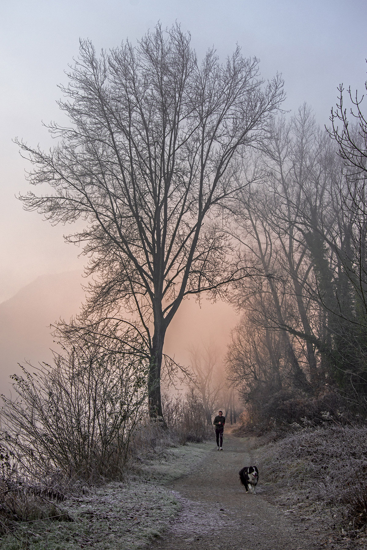 gelida l'atmosfera che nemmeno i bei toni riescono a riscaldare. Bella la composizione con il sentiero che dona profondita'. Bene l'inserimento del podista con suo compagno a 4 zampe