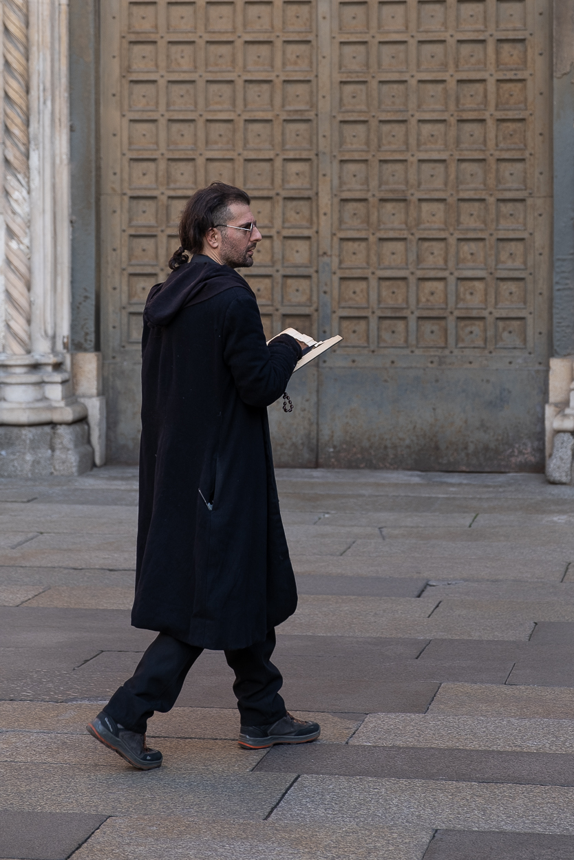 Soggetto interessante, come alcuni particolari che rafforzano lo scatto, il rosario e quel forse telefonino che sbuca dalla tasca  |