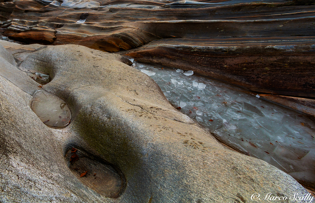 Un' altro angolo affascinante di questo luogo, linee curve e sinuose e sfumature graduali scandiscono il frame , piacevoli le consistenze che si percepiscono nelle alternanza tra pietra e ghiaccio. Mi piace Ciao