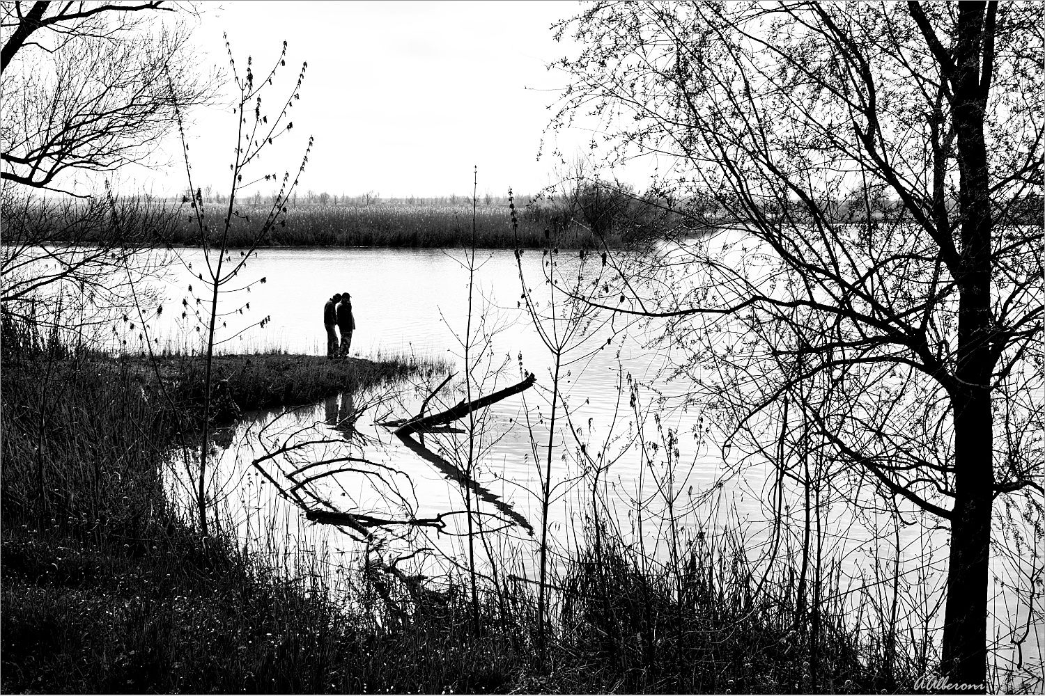 In un intrigo di rami, arbusti e riflessi in chiaroscuro da "china" trovi la soluzione delle figure, nella striscia pulita del fotogramma.