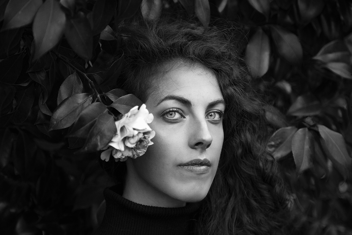 Due fiori che si sfiorano, uno leggermente fuori fuoco,com'è giusto che sia perche la protagonista delicata e sensuale di questo ritratto è lei, con i suoi occhi magnetici, perfettamente valorizzati. Un bel ritratto , elegante e femminile. Bravo Ciao