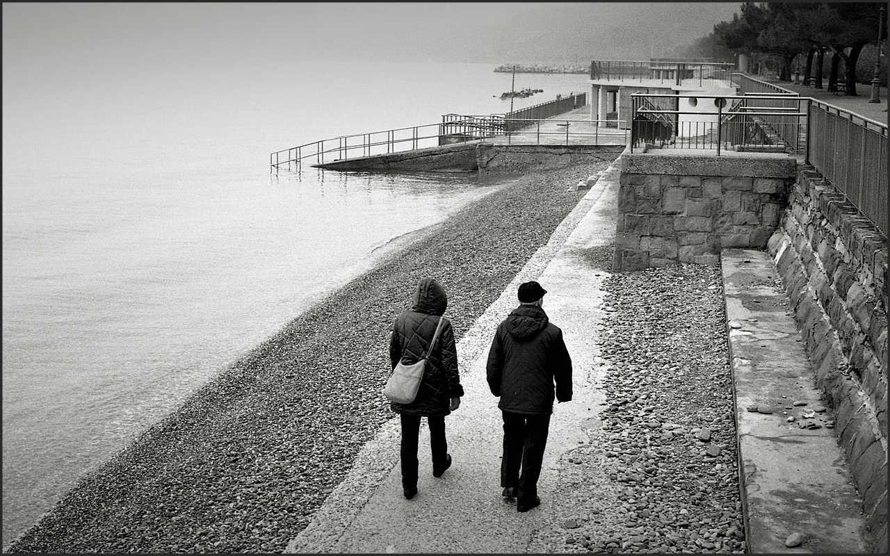 Ottima la ripresa dei due signori a passeggio in assoluta tranquillità ..gradevole atmosfera e b/n.