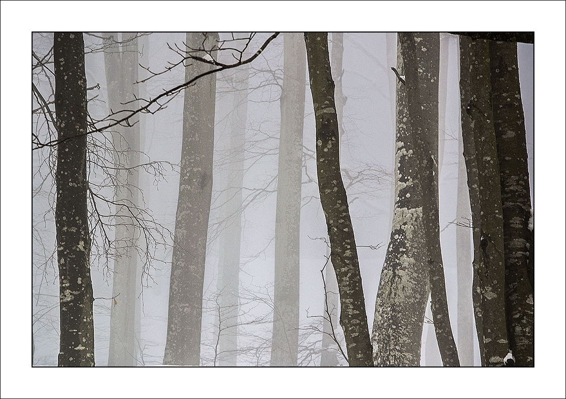 Un' elegante gruppetto, in un morbido gioco di vedo non vedo tra la nebbia. Semplice e piacevole. Però due piccoli appunti, il taglio, forse avrei stretto a dx e avrei eliminato l'angolino in alto a dx, e poi attenzione ai bordini presenti in modo importante sui tronchi in primo piano .  _________________