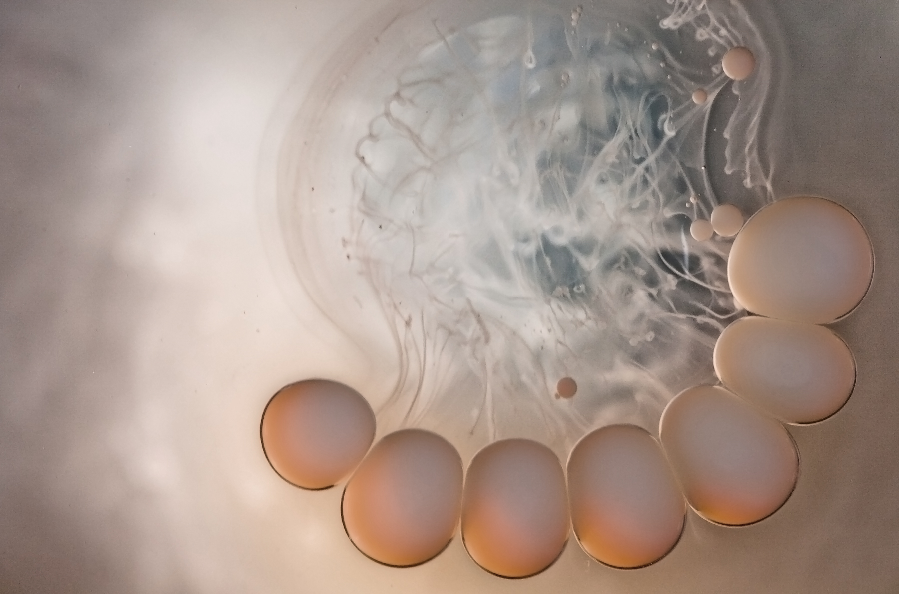 acqua olio latte, acqua sotto olio galleggia e sopra posizionate gocce di latte, quando una di queste goggiolone di latte esplode scende a l livello sottostante e mescolandosi con l'acqua crea queste figure eleganti ed aliene che ricordano meduse o galassie misteriose e che a me piacciono parecchio Very Happy