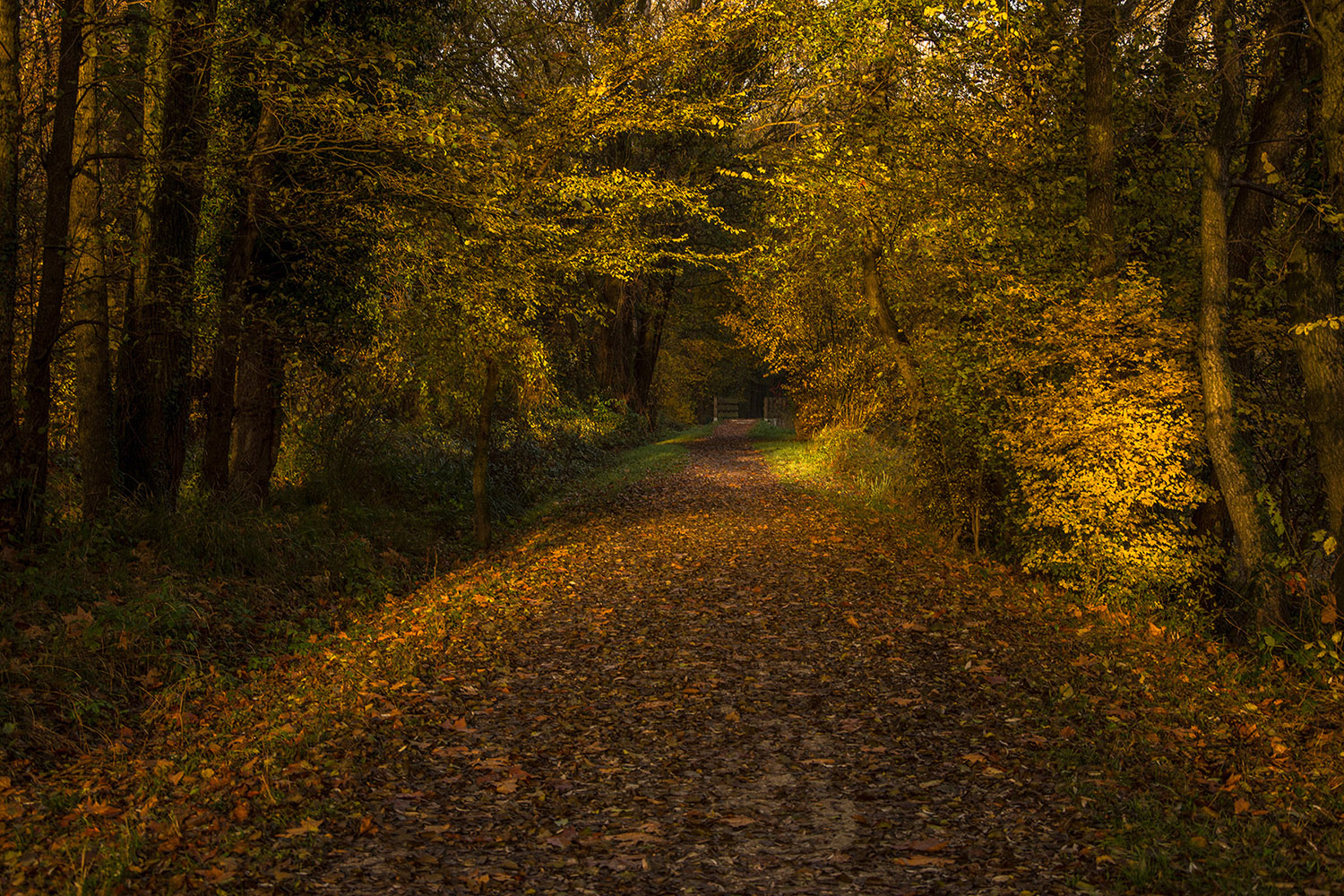 Piacevole percorso coperto da un tappeto di fogliame autunnale.. ottimi colori e luce.