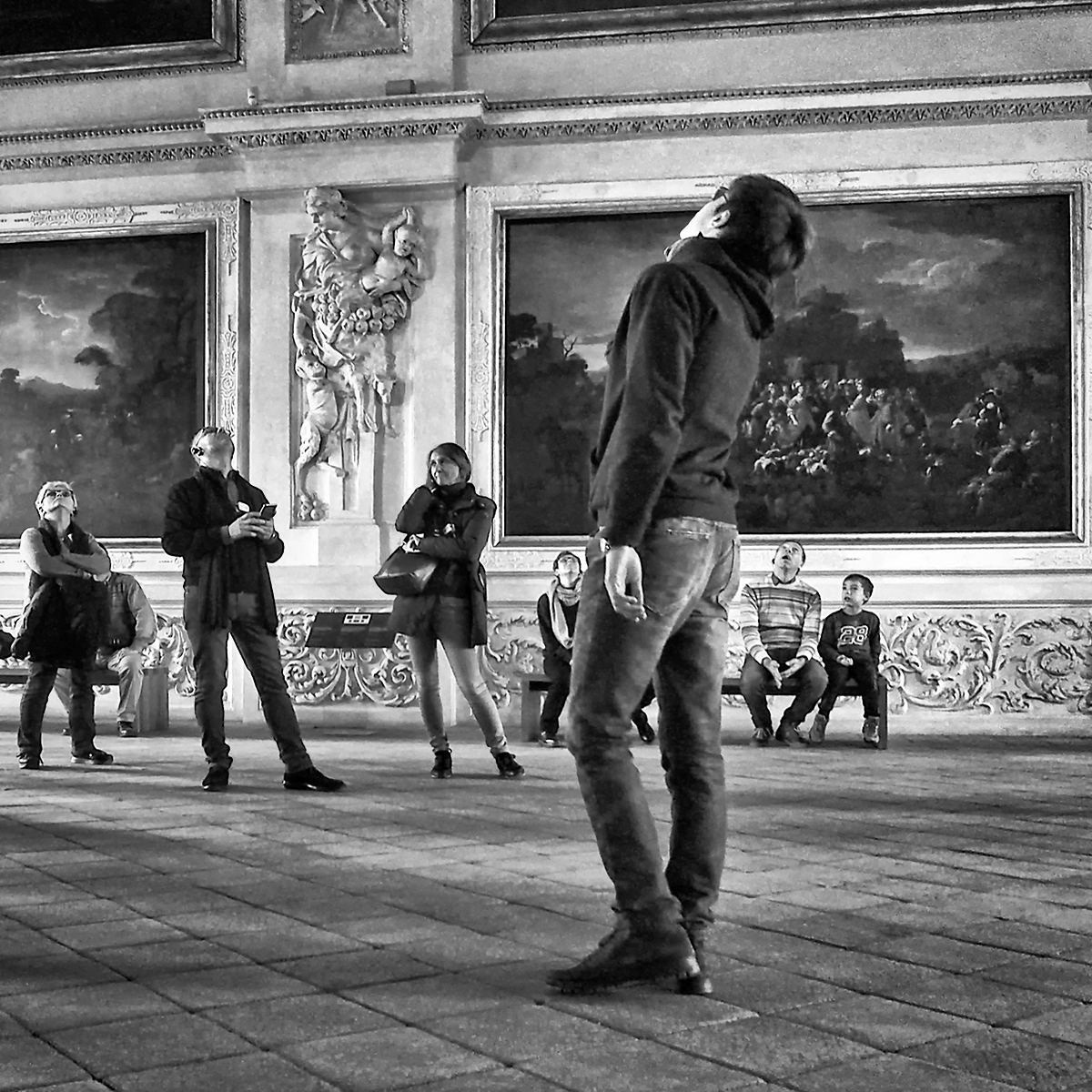 Mi sono sempre attenuto a ciò, ancor più che partendo da un 4/3 come si può vedere dall'allegato, dovrei per dimensioni e tipologia poter rientrare "nell'aura" di tale categoria....sempre che si voglia necessariamente classificare secondo una "famiglia" d'appartenenza lo scatto...e perchè quello risultante dal taglio dovrebbe essere così drasticamente "un'altra cosa" ? In questo caso specifico, (scattando al volo seduto sulla panca mentre la guida indicava ai turisti gli affreschi ed i decori presenti a soffitto) che senso avrebbe avuto mantenere quella ragazza in primo piano di schiena a sx che impalla gli altri? Mario, pensi che un Editor (o semplicemente il buon senso) accetterebbe mai una foto così? La purezza di che cosa... di un'immagine magari scattata in jpg e già elaborata dal processore?... "Le mie foto sono vere perchè non le lavoro con nessun programma...come escono dalla macchina rimangono"... Hai mai sentito affermazioni del genere? Ai nostri tempi (mi par d'aver capito che sei giovane come me) ...quanto si mascherava sotto l'ingranditore con il cartoncino...e quanto si tagliava?
