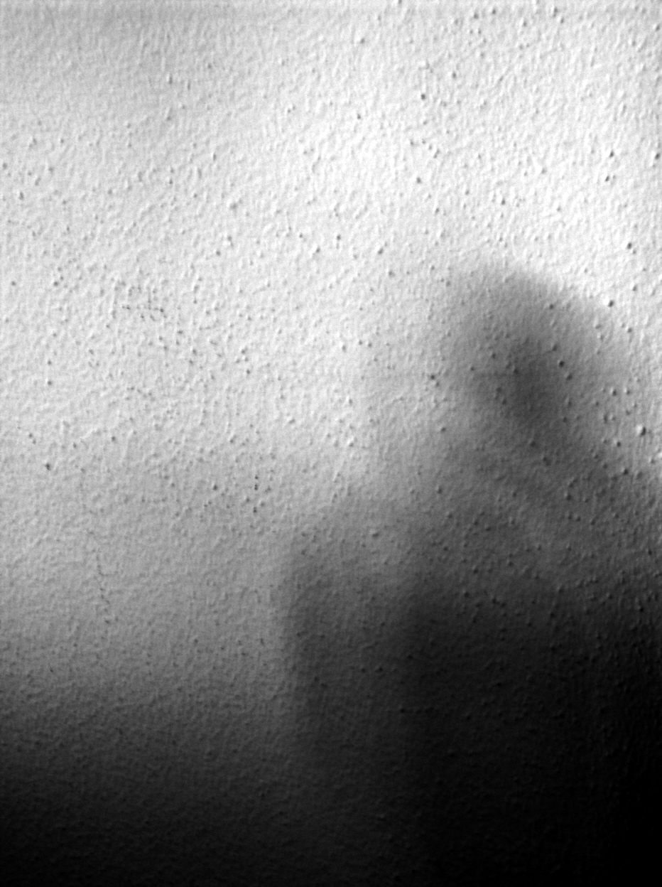 Il materico muro ci rimanda un ectoplasma di ombra.Immagine molto suggestiva in un bel bn.