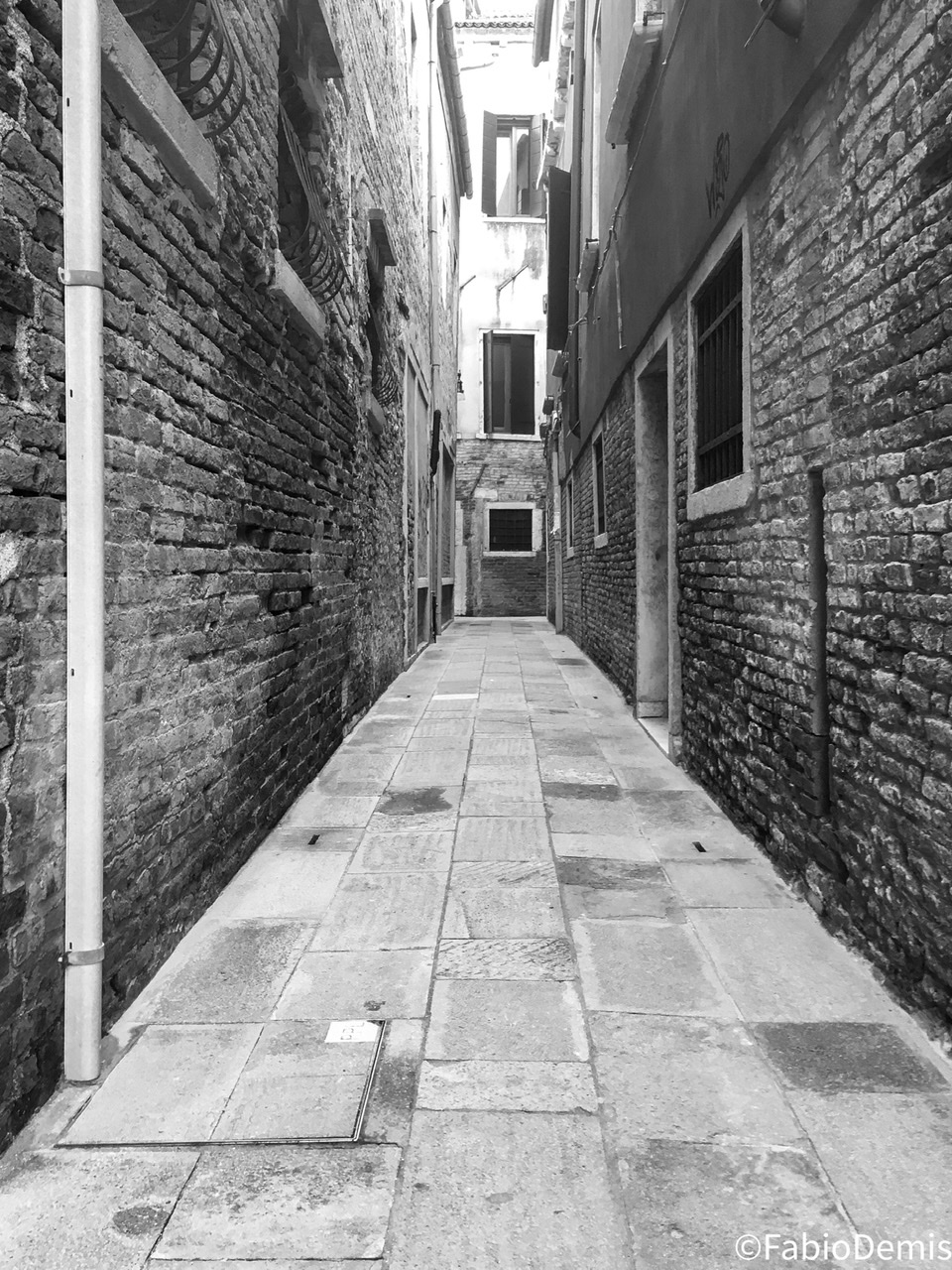 Il motivo? Perché non riesco a trovarvi uno spunto che possa muovere allo scatto, perché la luce è problematica (la differenza di illuminazione tra la viuzza e la facciata sullo sfondo), perché non c'è un "soggetto" (al di là di questo scorcio, piuttosto anonimo benché veneziano), perché sulla scena non succede niente, non vi appare nessuno capace di dare sapore allo scorcio, non vi si scorge una particolarità degna di nota.