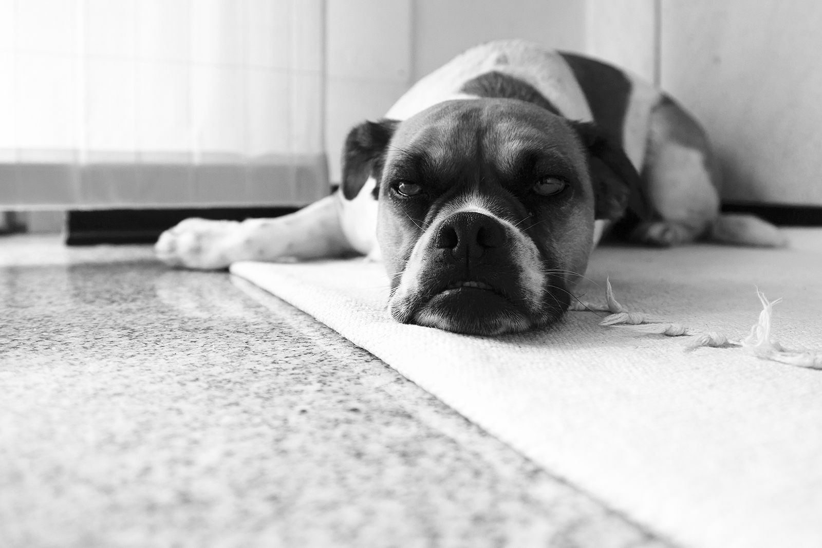 | Ottimo il punto di ripresa ed il bn, che mettono in risalto la particolare espressione del cane. Immagine molto bella