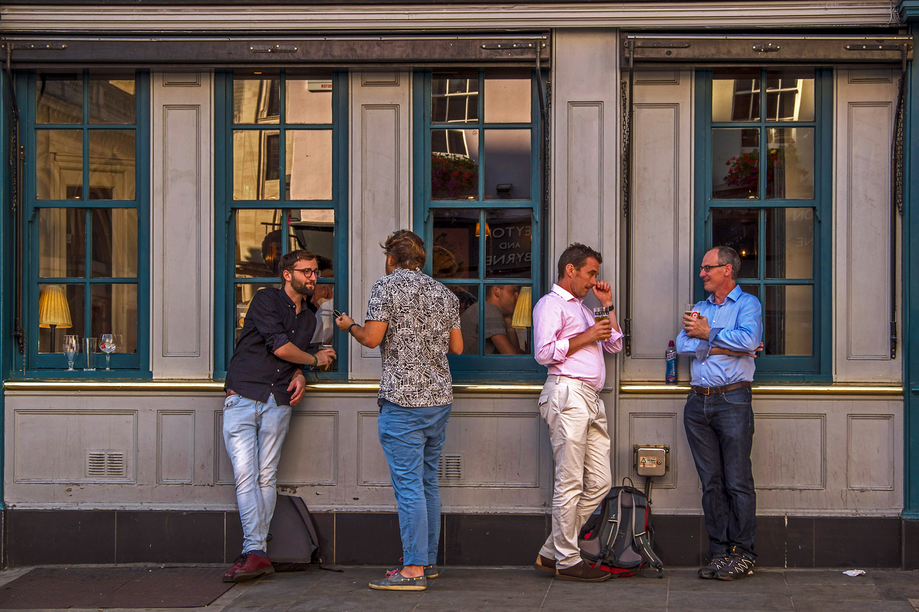 A me sembra che la scena lasci incerto l'osservatore se abbia più ruolo il teatrino umano, la ricerca del rispetto delle geometrie o... l'esploratore in camicia rosa.