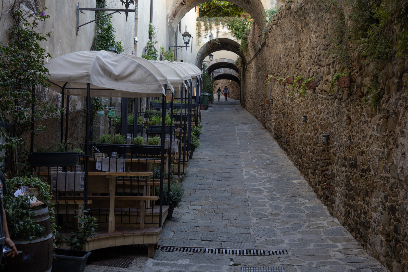 Buona la prospettiva creata dalla serie di gazebi e archi,purtroppo l'assenza di luce rende la scena un po piatta e il braccio con la sigaretta in primo piano è da rimuovere o escludere Ciao