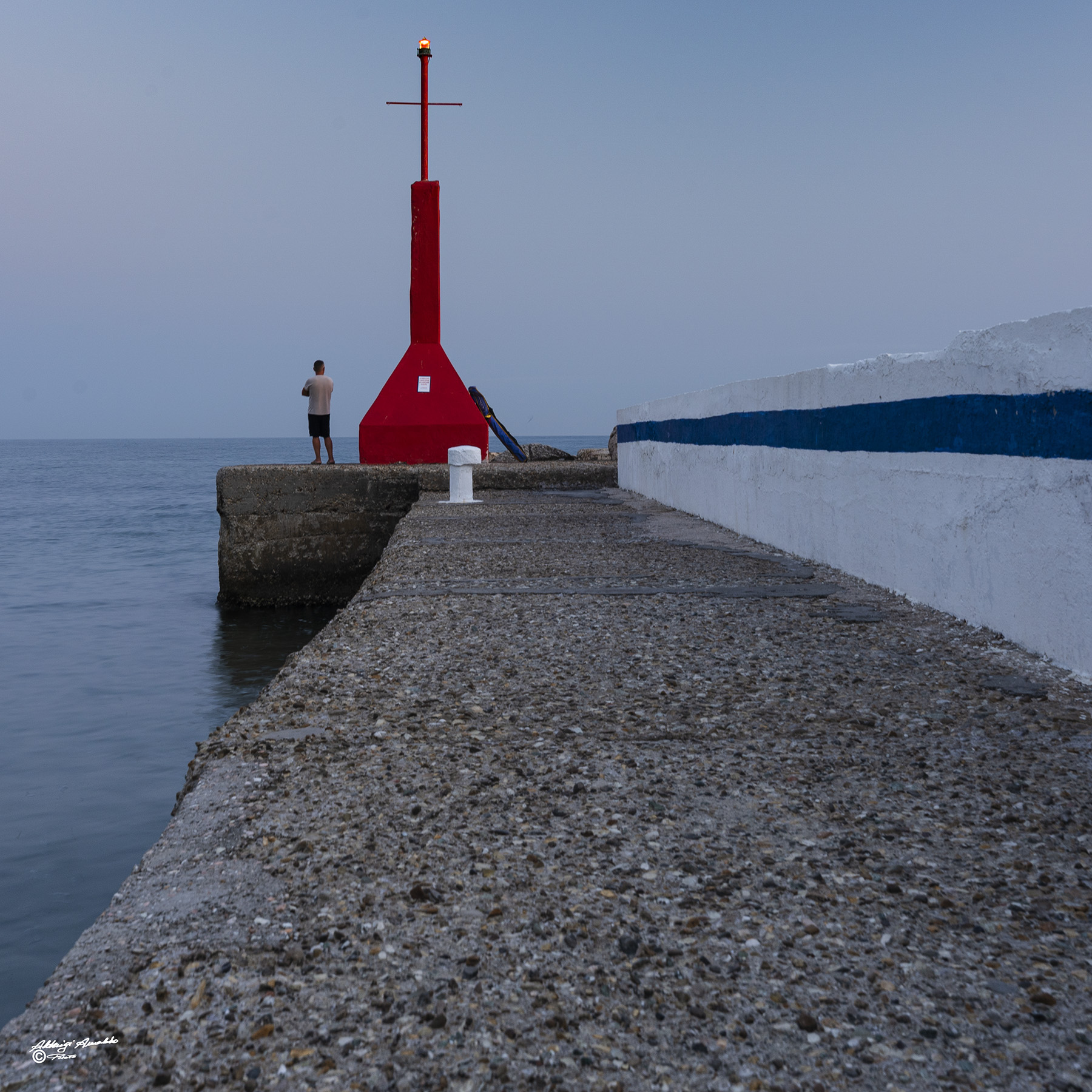 Si come al solito è mattina presto siamo sull'adriatico.. ho visto il signore che guardava sul mare.. è la sacca della pesca appoggiata.. sicuramente cercava il posto per posizionarsi..