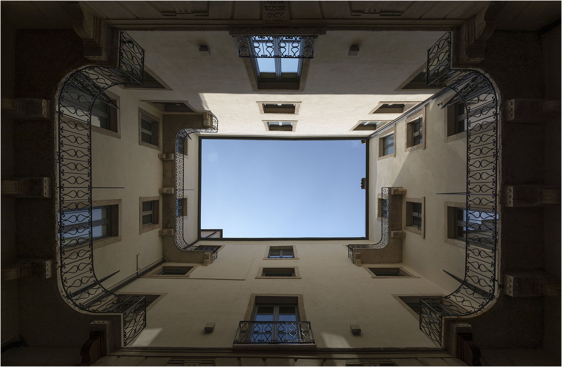 Splendida questa veduta a naso in su. Il tassello di cielo azzurro si staglia bene dentro questo imbuto architettonico. Mi piace _________________ - Fotografo della domenica |