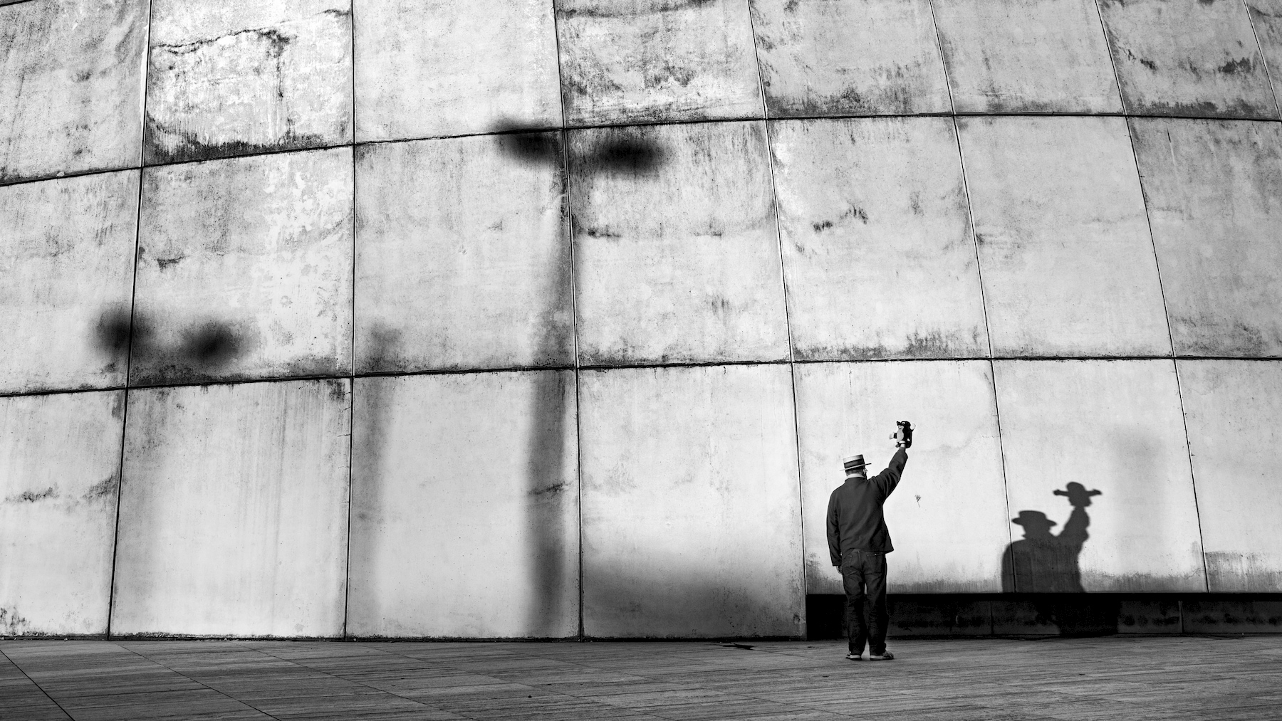 Vedere la scena dei due lampioni sulla parete, poi improvvisare lo stesso motivo con una persona e la relativa ombra con gli stessi profili...è arte!