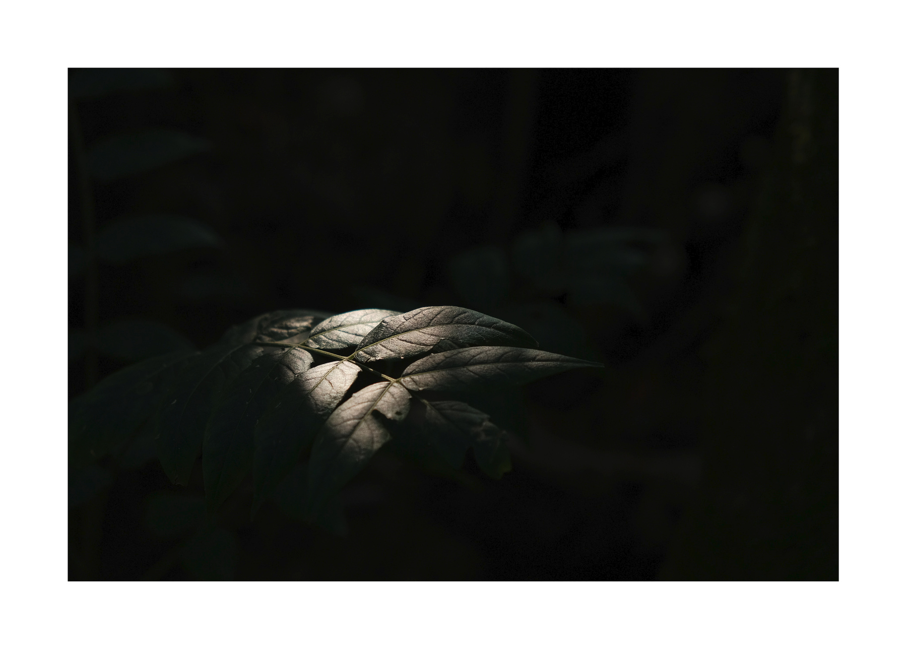 Una foto delicata… un raggio di sole che illumina poche foglie nell’oscurità diffusa… Poetica, molto bella