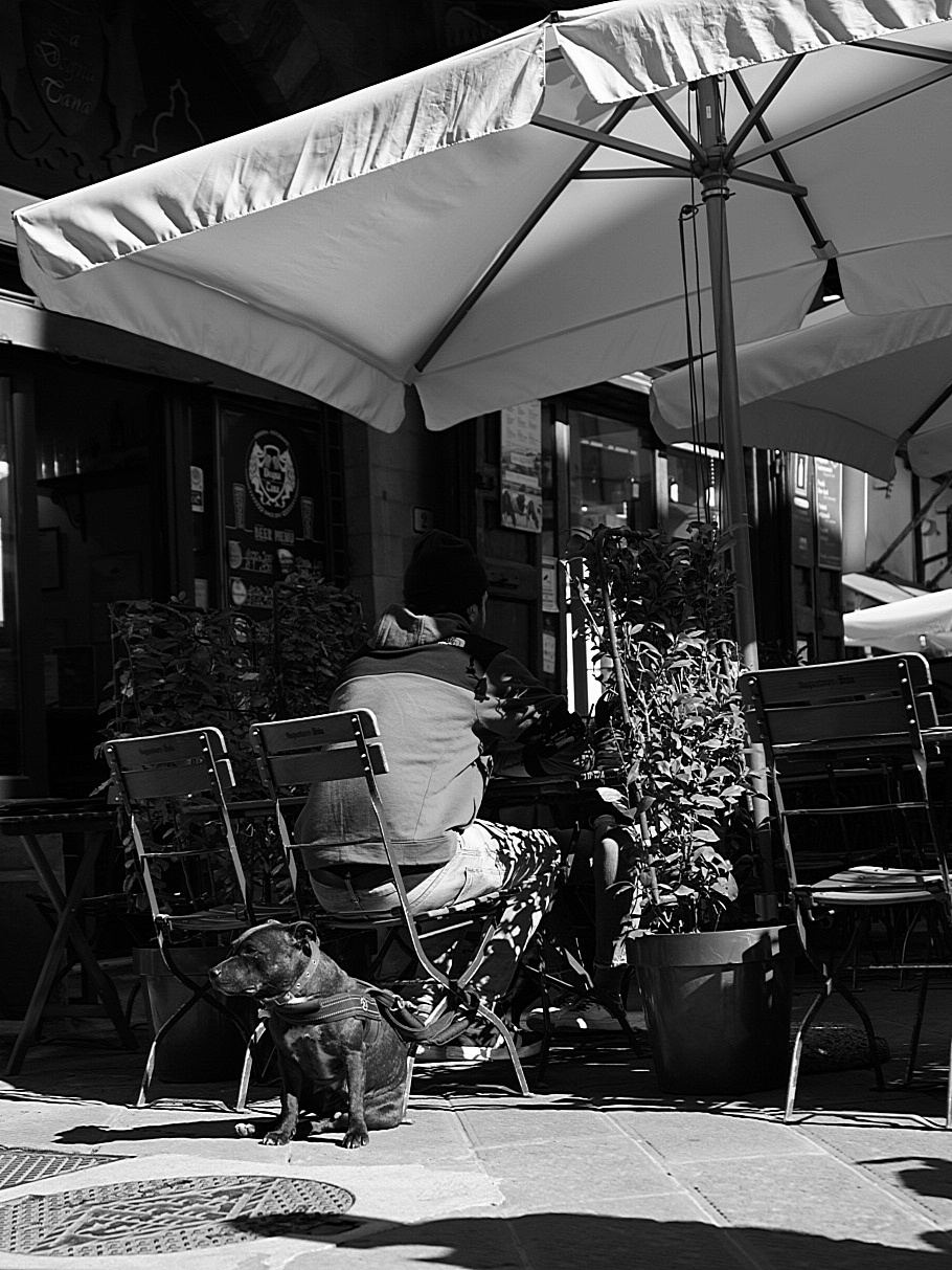 Ciao Perozzi, diciamo che il soggetto è il cane ma mi piaceva l'idea di rappresentarlo di spalle al suo padrone, all'interno del contesto.