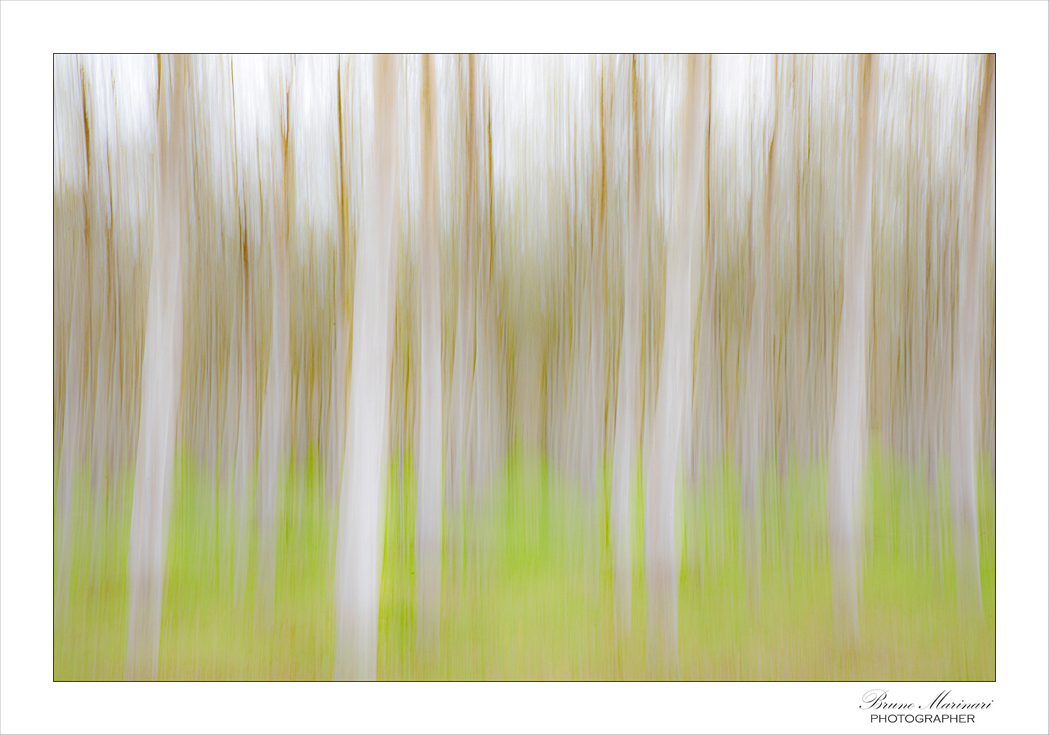 Molto bella! Mi piace moltissimo questa elaborazione di una macchia di alberi che iniziano a spogliarsi… Bellissimi i colori delicati e evanescenti e la luce morbida e soffusa… Complimenti!