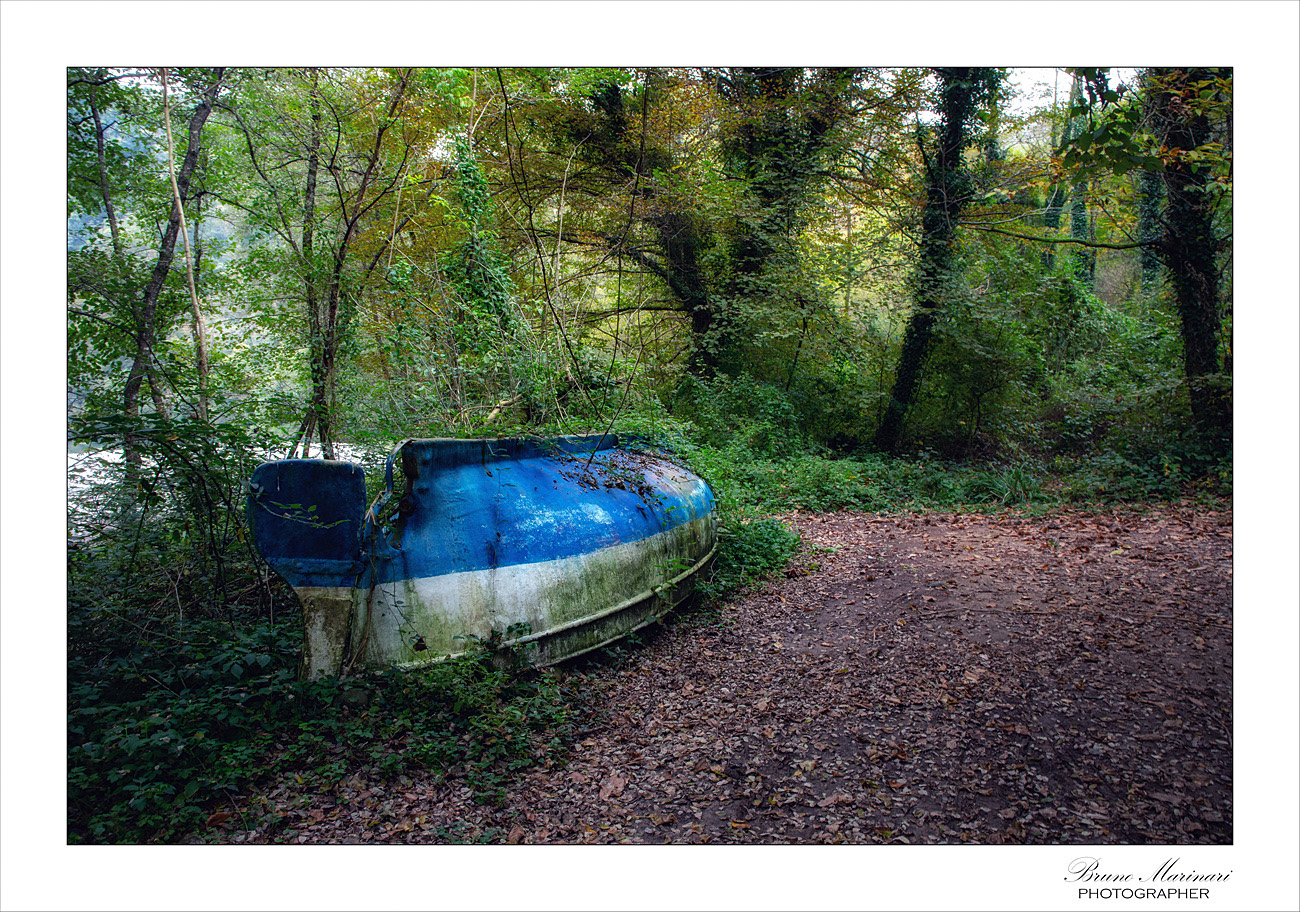 Mi piace lo stato di abbandono e desolazione della barca lasciata in balia della natura che vi brulica attorno. Quel fitto intreccio di rami e tronchi e foglie suscita una sensazione di smarrimento e di selvaggio. Belli i toni chiari e scuri che si contendono la scena. Non so se l'intento è voluto ma mi pare ci sia un pizzico di ciano di troppo. Ho provato a correggerla e migliora a mio parere