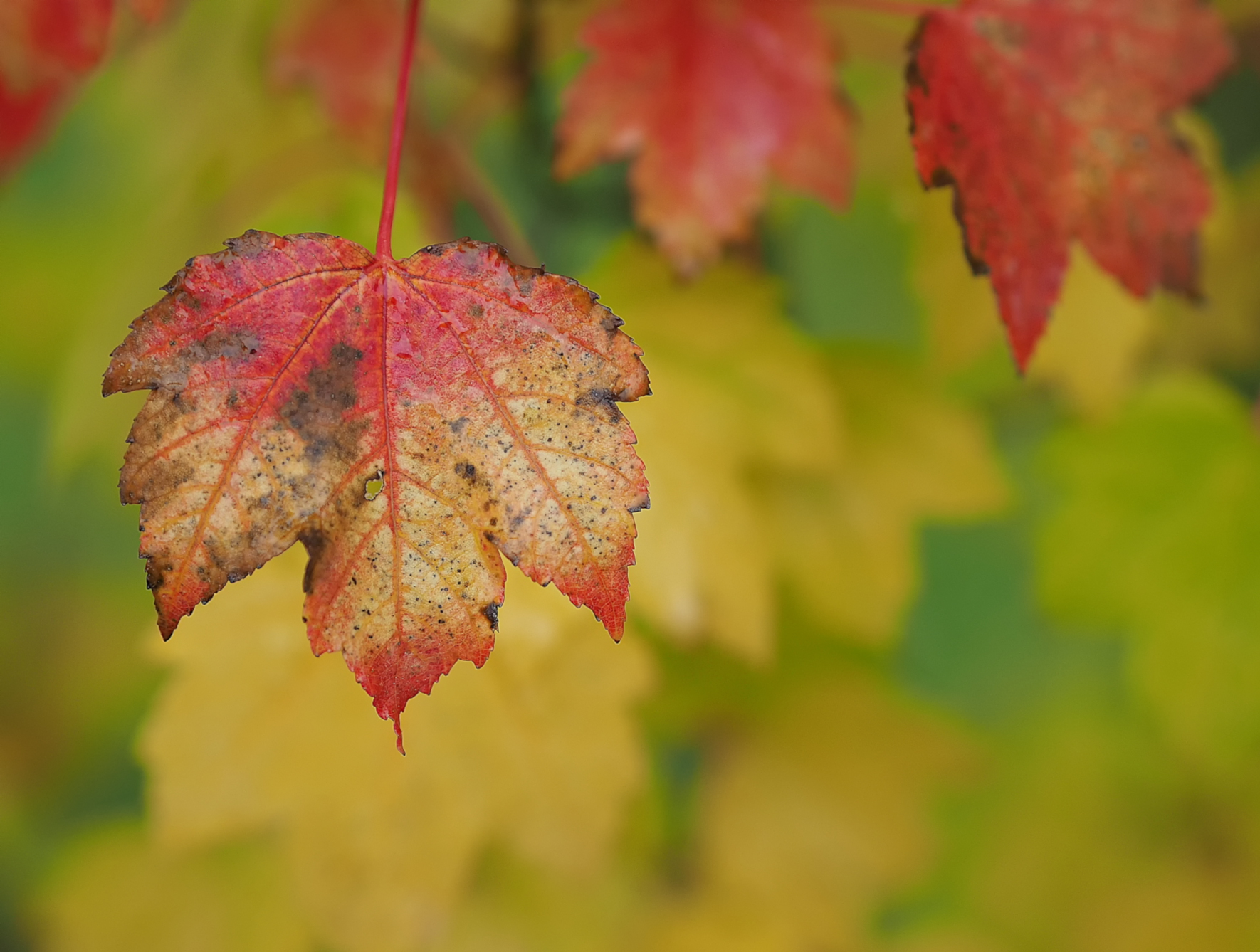Gradevolissimi colori autunnali e altrettanto gradevole sfumato. Avrei optato per un po' di meno spazio in basso a vantaggio di una maggior ripresa delle foglie rosse in alto .
