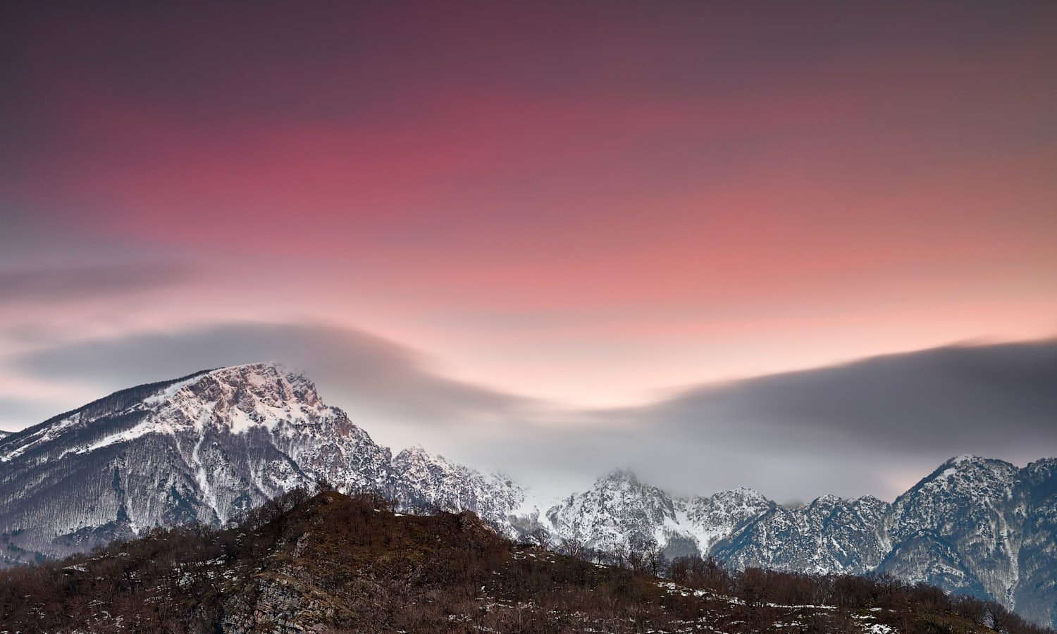 ero nel Parco d'Abruzzo nel febbraio 2019 in cerca di lupi, e una sera rientrando abbiamo visto un tramonto sulla camosciara che prometteva bene.