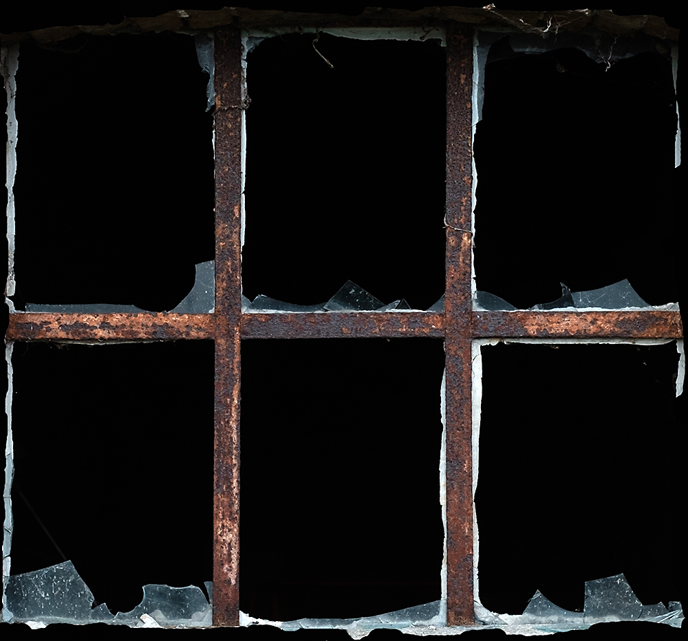 Anche lo scheletro di questa finestra con le sue ferite e le sue schegge fa da monito al profondo scuro che vi sta oltre.