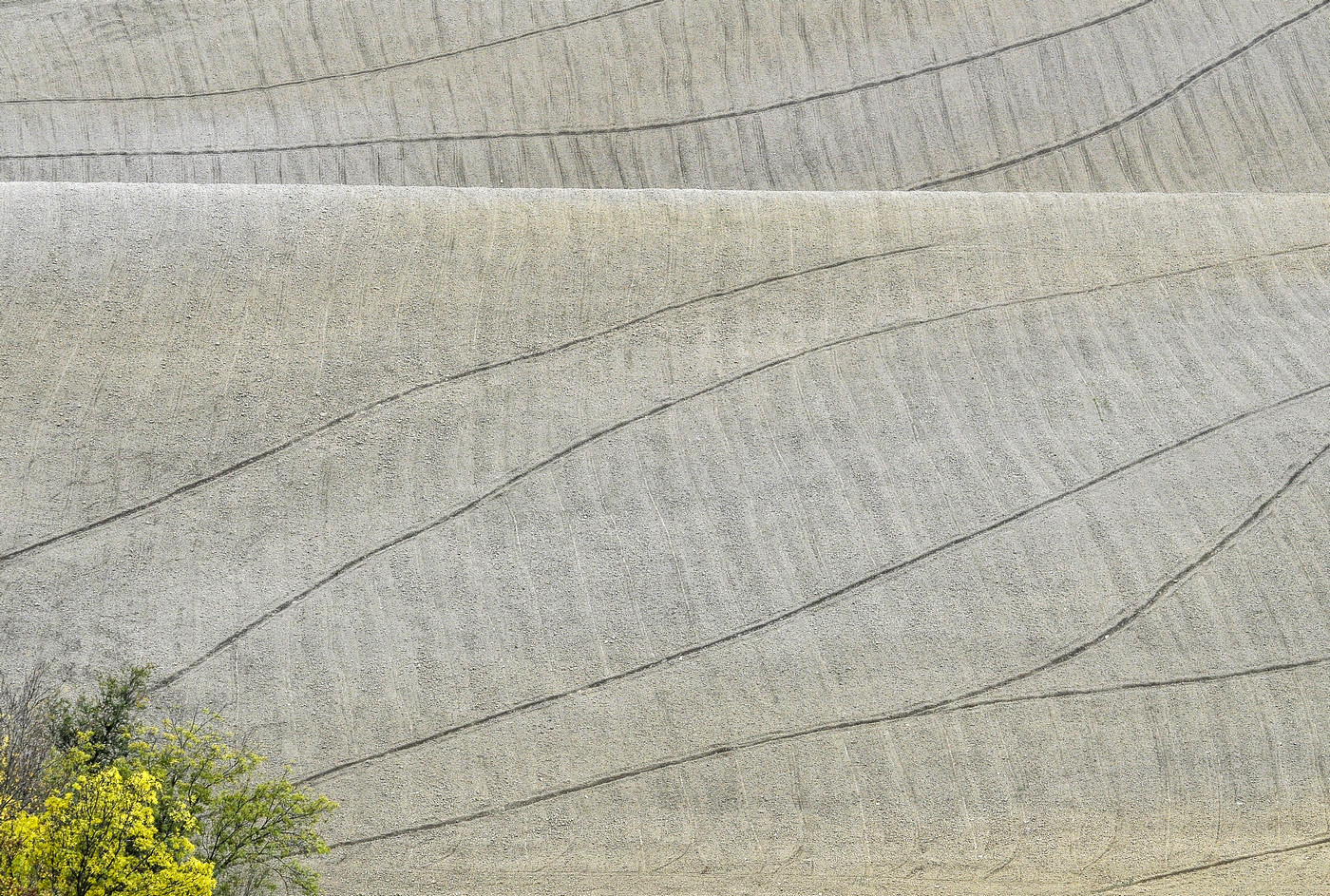 Mi piacciono molto questi solchi che creano una grafica davvero molto interessante… Non mi dispiace nemmeno l’alberello nell’angolo, che contestualizza un’immagine altrimenti completamente astratta. Complimenti!