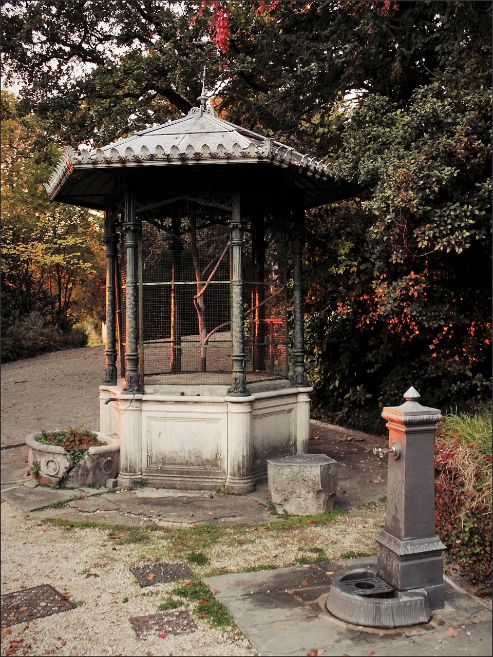 Come già ti hanno detto.. quella luce calda che filtra tra la voliera fino alla fontana con alcune foglie che si dipingono di rosso sono molto piacevoli.
