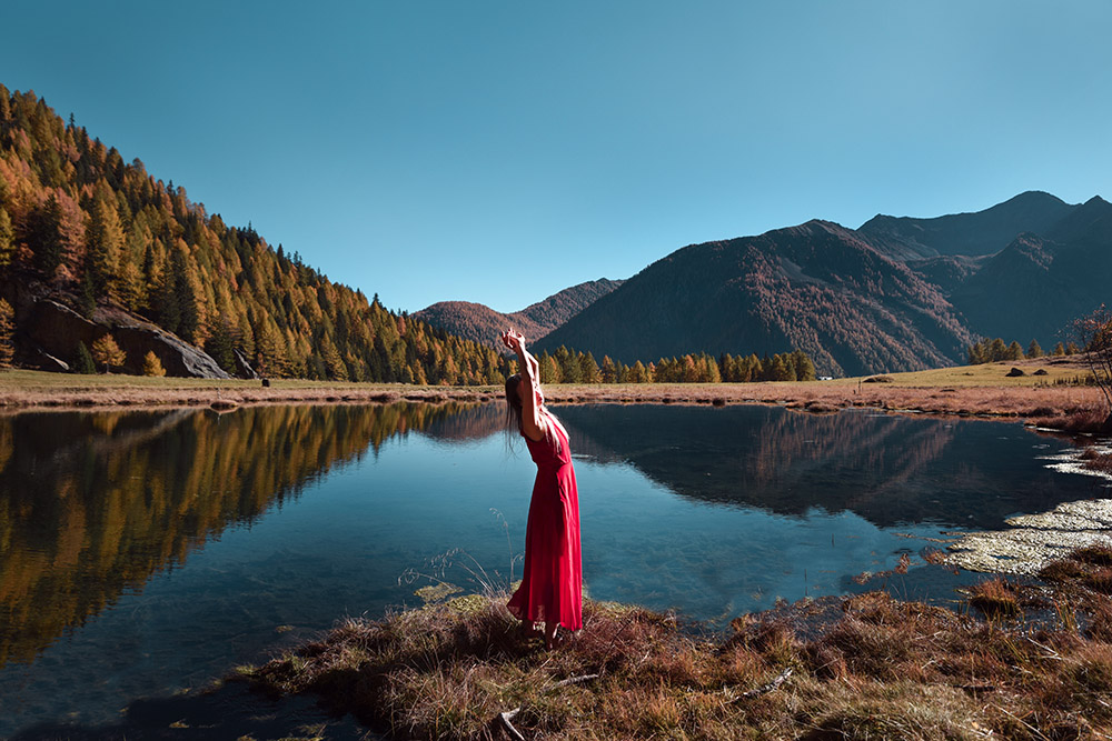 Non so se comprendere più ombra della donna e alzare l'orizzonte anche se si tratta di un riflesso, ma in effetti non è proprio uno specchio. |