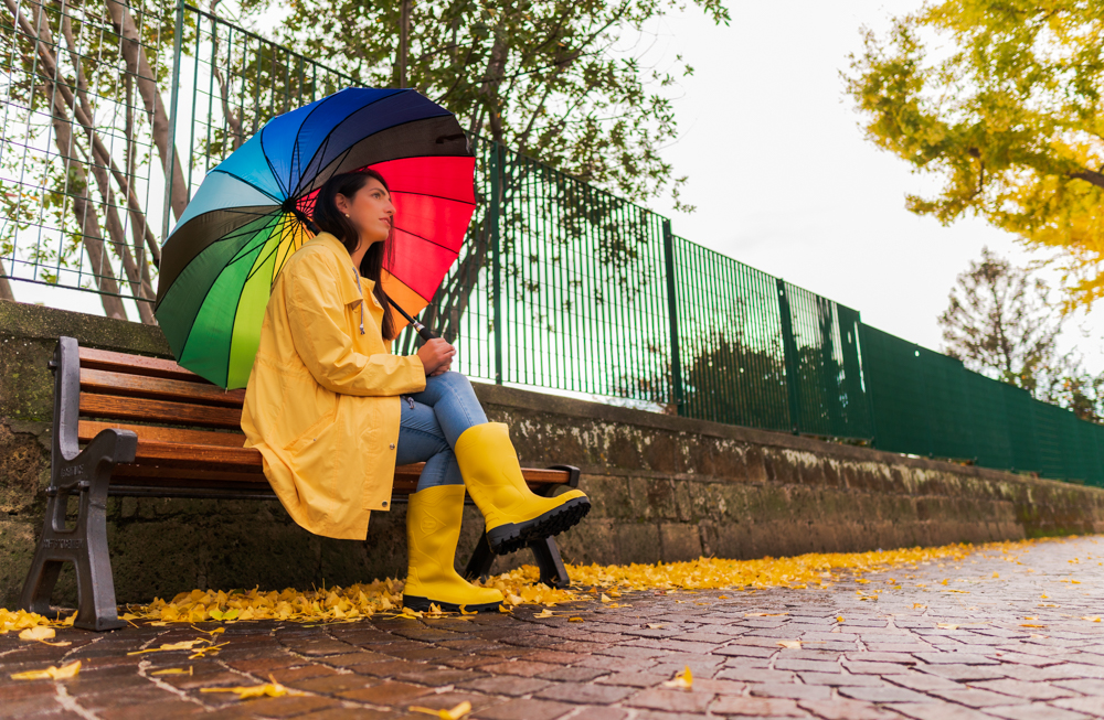 Ottimo il pdr. Posso dire una cosa? Io l'avrei vista meglio senza ombrello. Gialli gli stivali, giallo l'impermeabile, gialle le foglie e giallo l'albero: una perfetta immagine autunnale giocata sul monocromatismo. L'ombrello arcobaleno, un po' scontato, mi rende invece la scena più costruita...