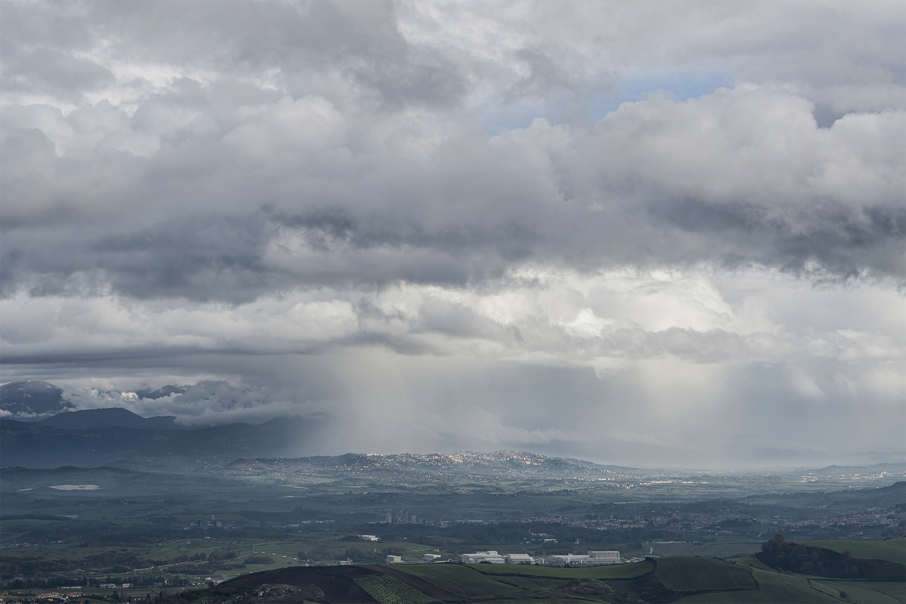 maestoso, bellissimo il volume delle nuvole ed il chiarore della pioggia che cade all'orizzonte