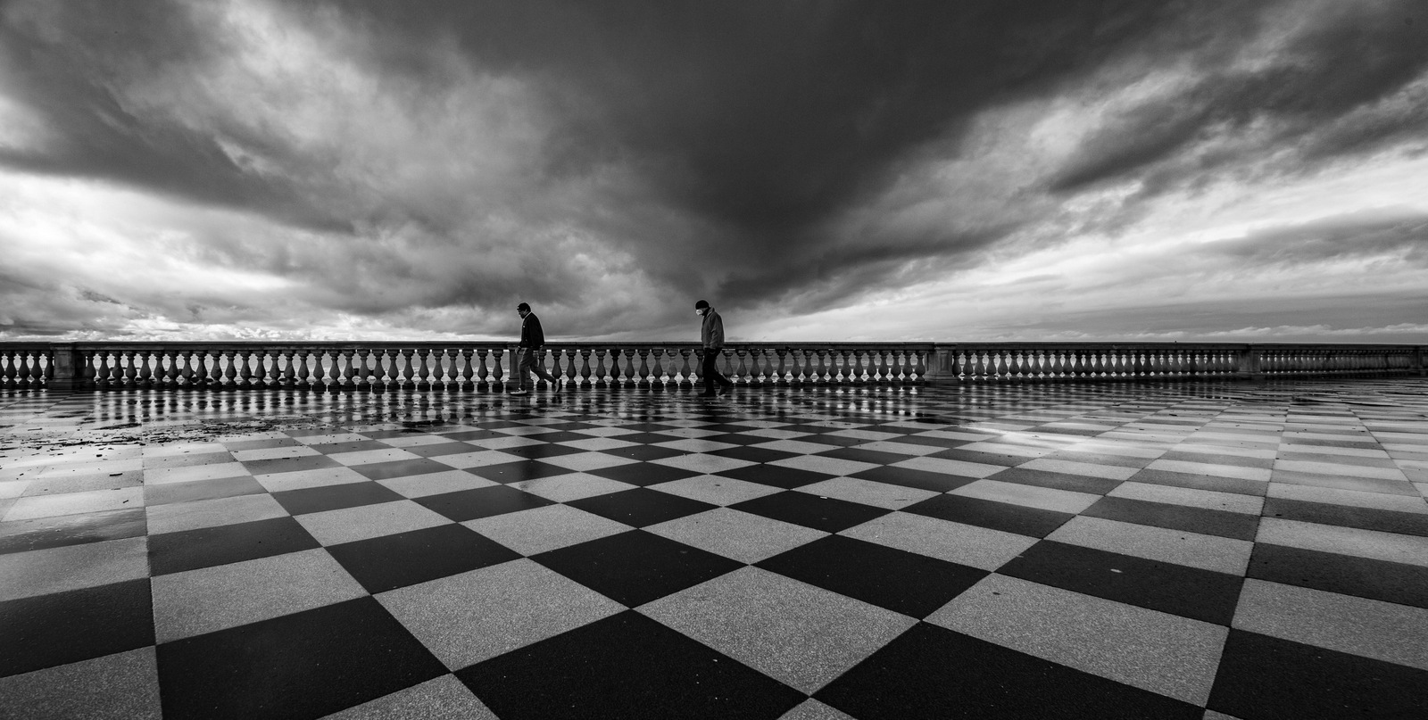 Come pedine nella grande scacchiera del mondo, qualcuno sopra di noi pensa alla prossima mossa e quel qualcuno appare incombente e minaccioso, buona la composizione e ottimo IL BN ... bravo complimenti!