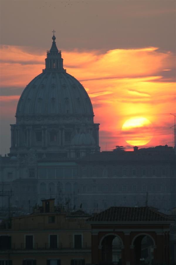 Mi piace l'inquadratura che hai scelto, col cupolone decentrato a fare da contraltare alla palla di sole infuocato.