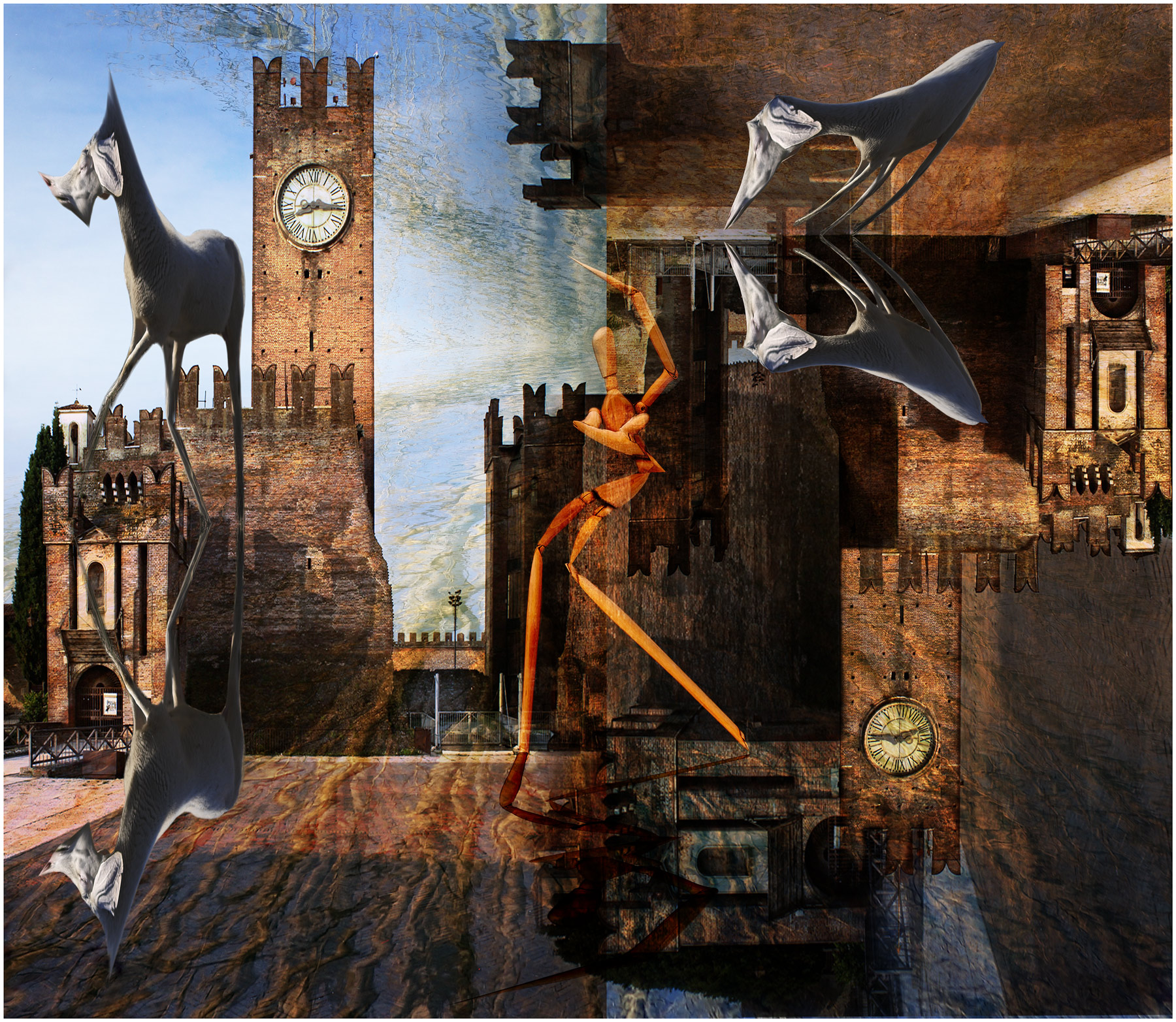Con la presenza degli orologi, dei cavalli e altre figure allungate mi ricorda molto Dalì… ma con un’interpretazione ricca di elementi e molto personale… Immagine bellissima, Claudio, sei davvero un eclettico, complimenti!