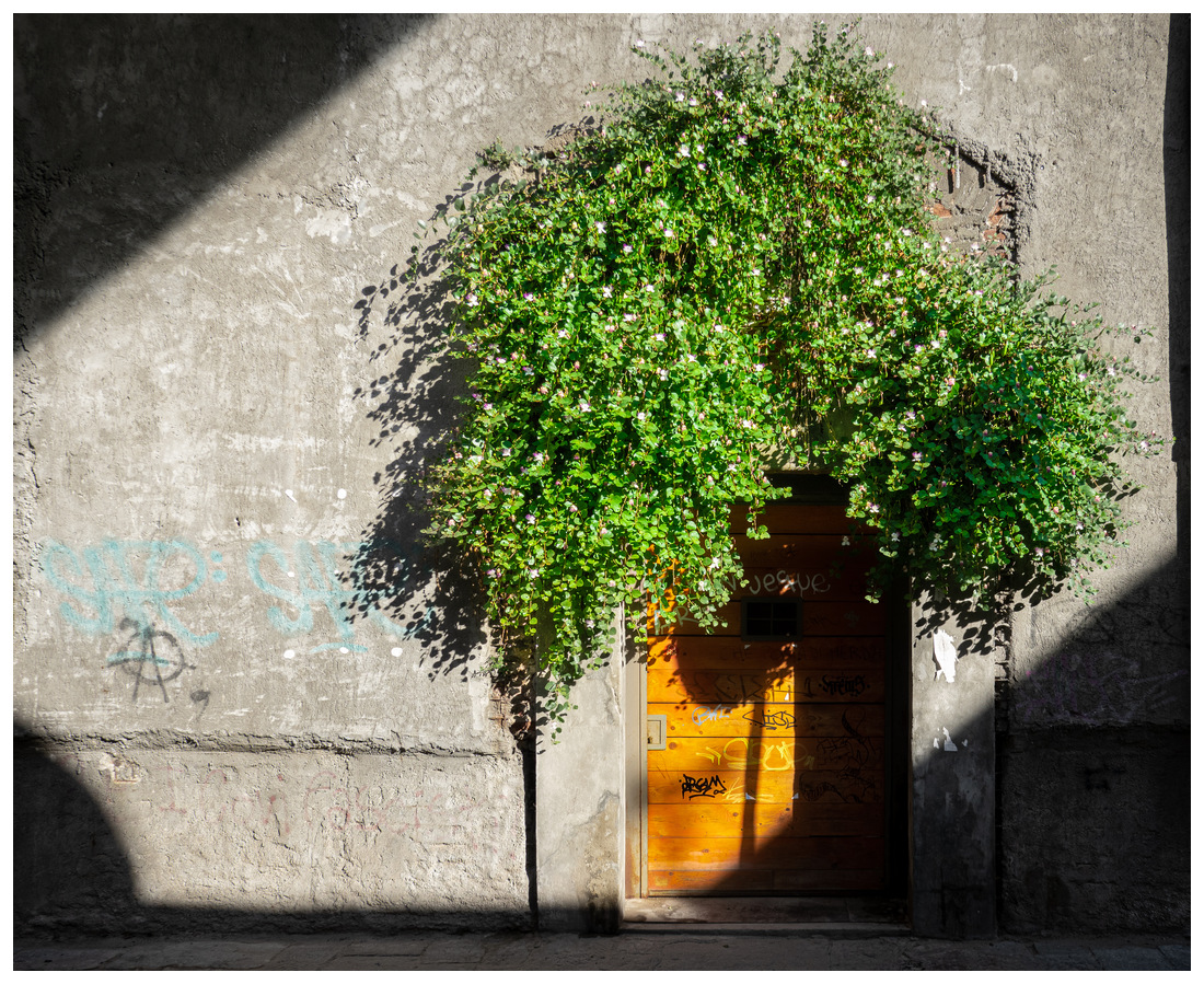 Si crea una spirale virtuale partendo dall'angolo basso sx seguendo prima l'ombra, poi risalendo sul pilastrino sinistro della porta, quindi sulla pianta...