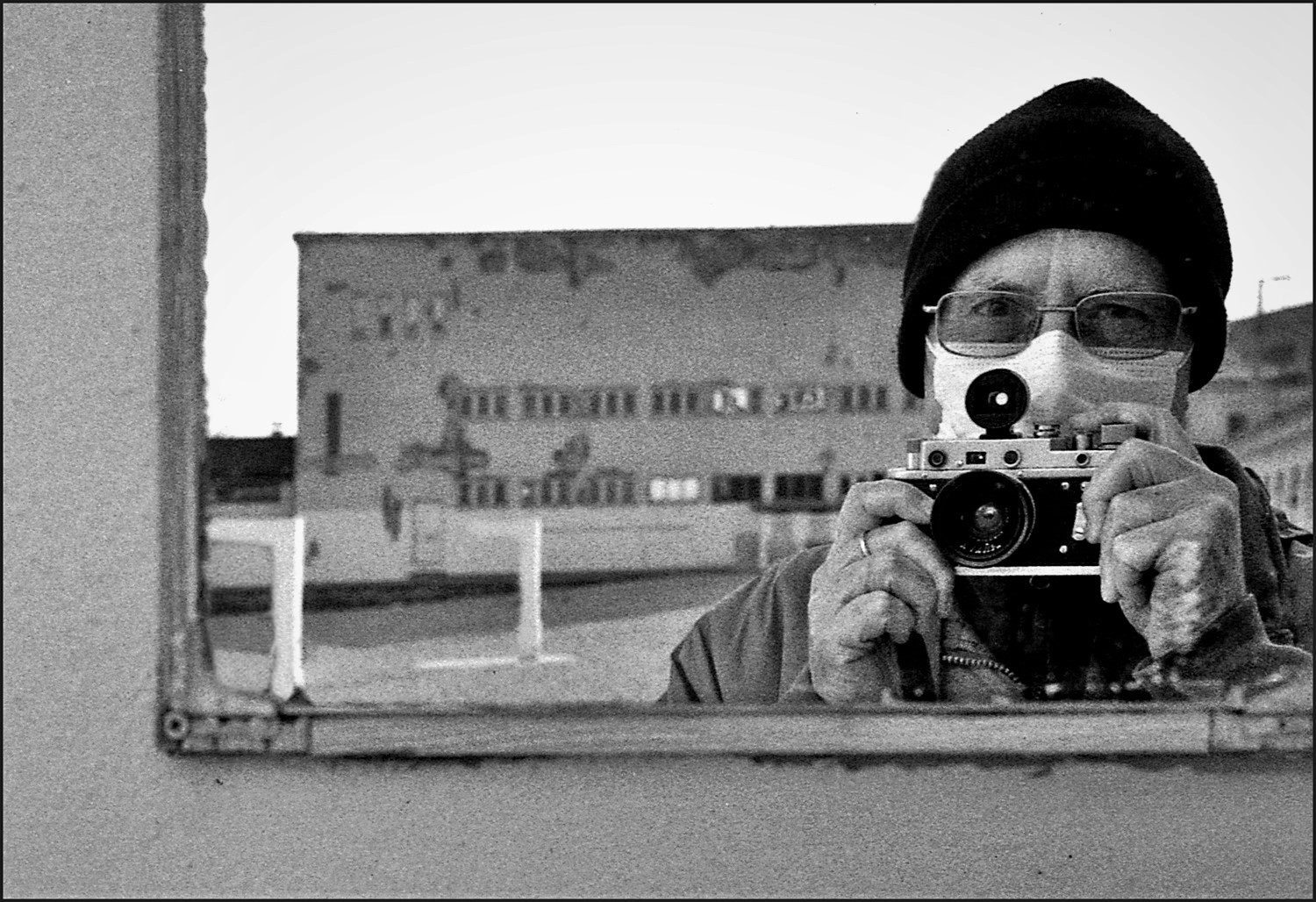 Un autoritratto che ti rappresenta molto bene, con una tua amata macchina analogica e tutto il sapore della pellicola… e che rappresenta bene anche il periodo attuale, imbacuccato e con mascherina… Ottimo.