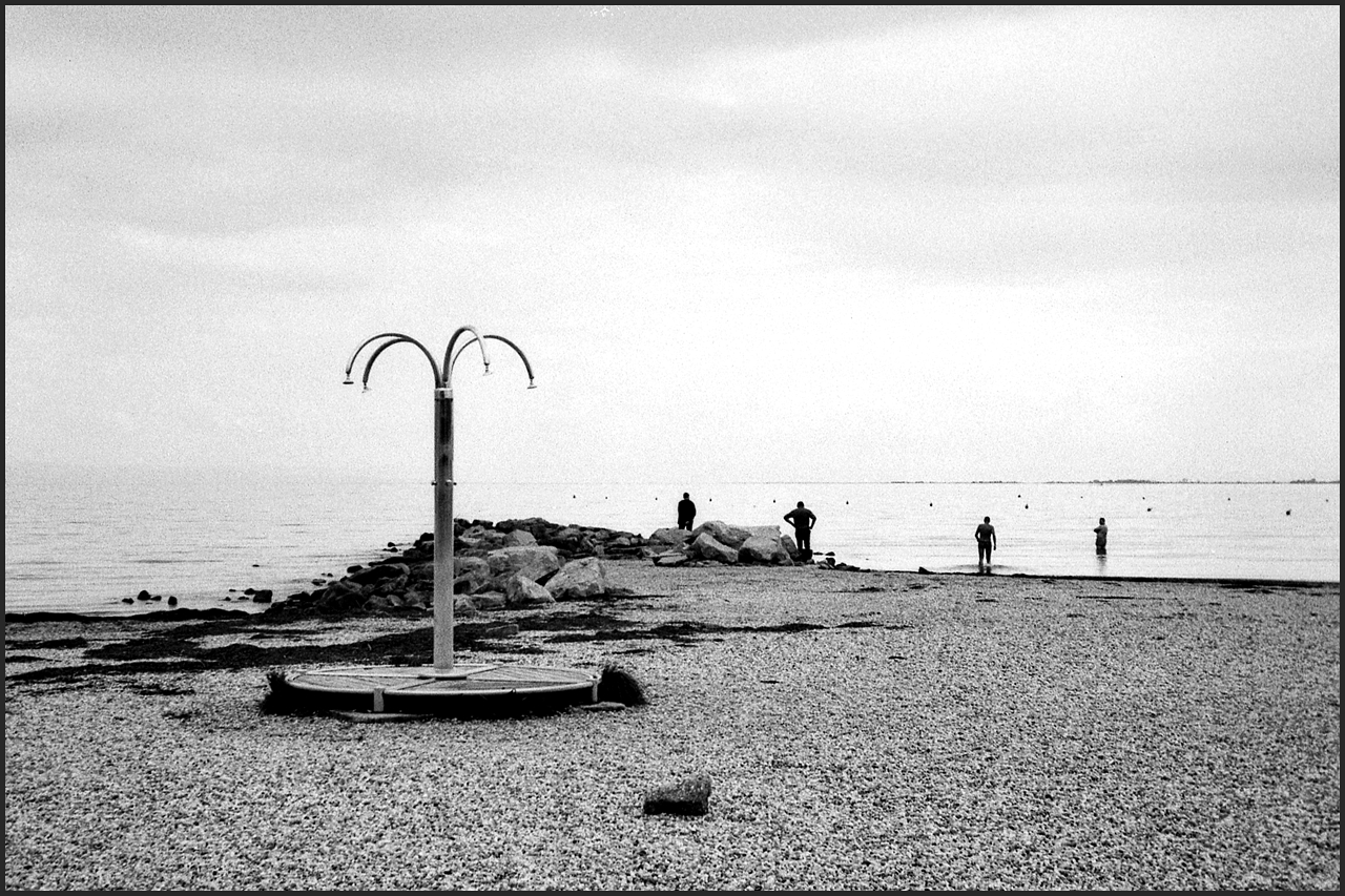 Il fascino granuloso della pellicola per questa equilibrata composizione, con le quattro figure equidistanti e le docce a circolo che sembrano in attesa… Piacevole immagine Smile
