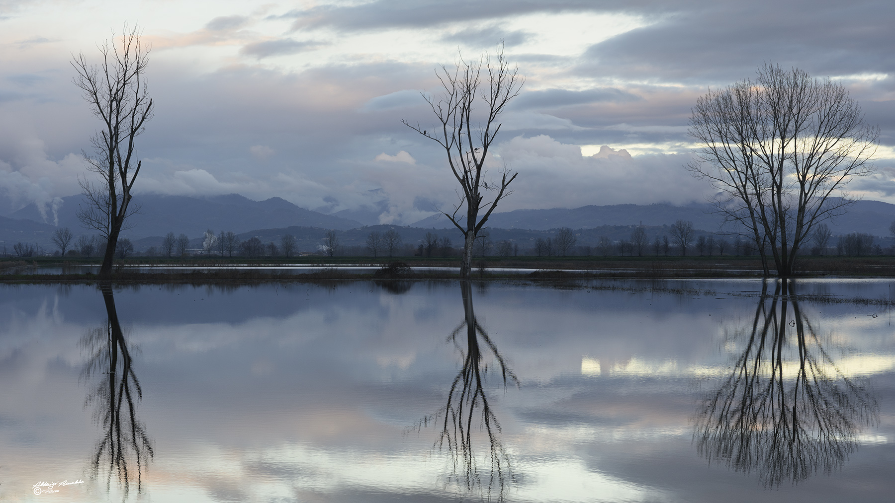 I riflessi si affascinanti ma anche quel cielo e quelle nuvole con toni pastello sono sono un sinfonia di vapore acqueo! Direi una gran bella prova! Un saluto _________________ Lodovico |