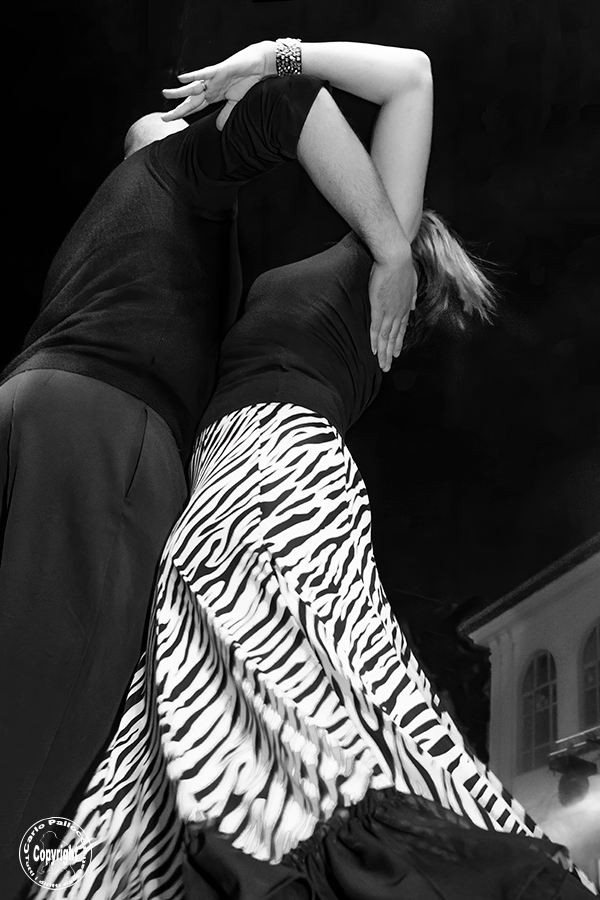 La mia posizione era sotto il palco e, purtroppo, ero molto limitato nelle inquadrature, ne ho alcune dove si vedono i visi ma, essendo ripresi dal basso, il mento era predominante lasciando poco spazio al resto del viso, quindi ho preferito questa che, a mio modo di vedere, lasciava, immaginare allo spettatore, pensare alla complicità della coppia su questo Tango Argentino.