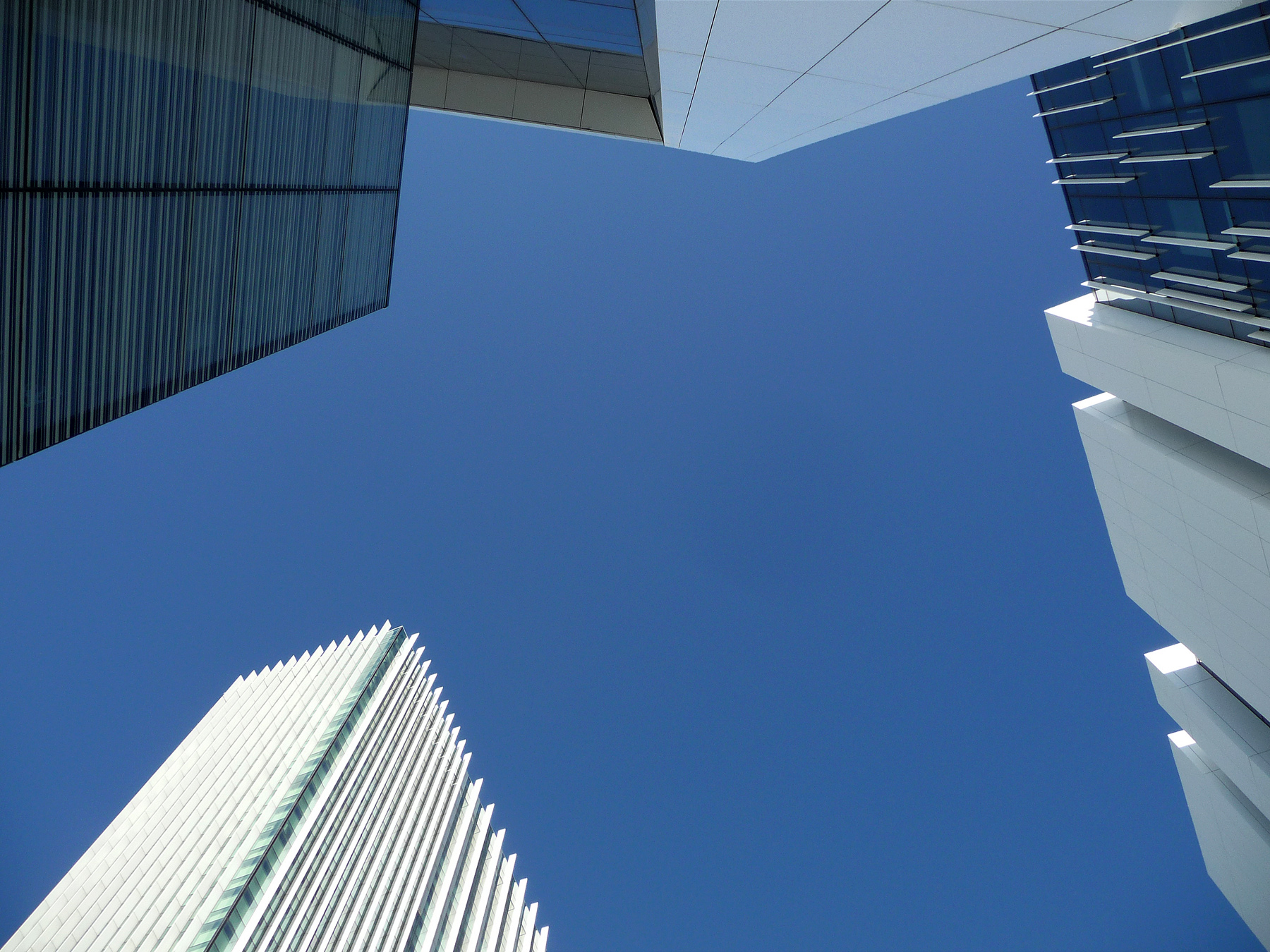 Bella metallica e vitrea con uno slancio verso il centro del cielo da vertigini.