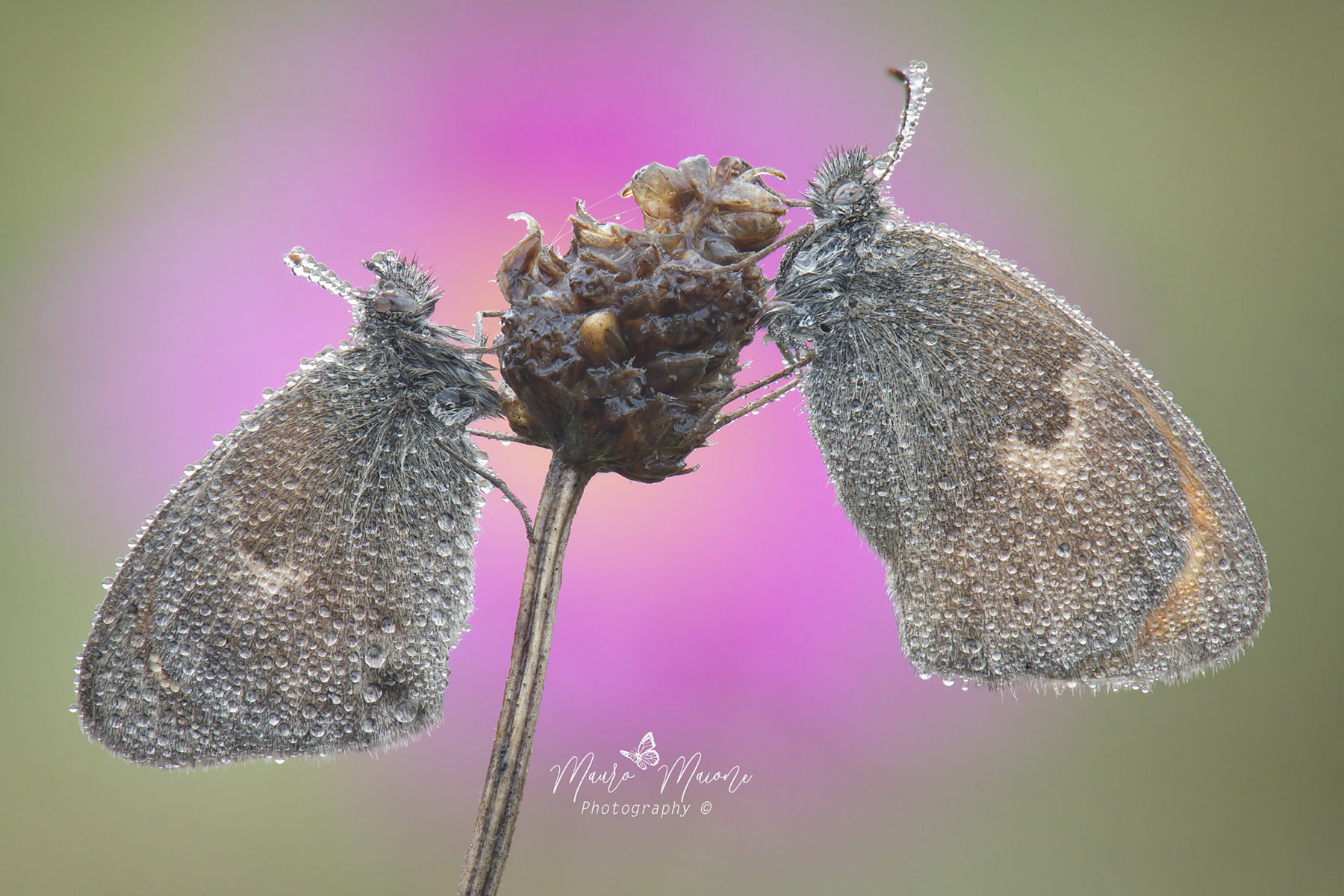 Da miniatura non m’ero resa conto delle goccioline sulle ali e sulle antenne! E con il fiore rosa sfocato a far da magnifico sfondo… straordinaria! Bravissimo.