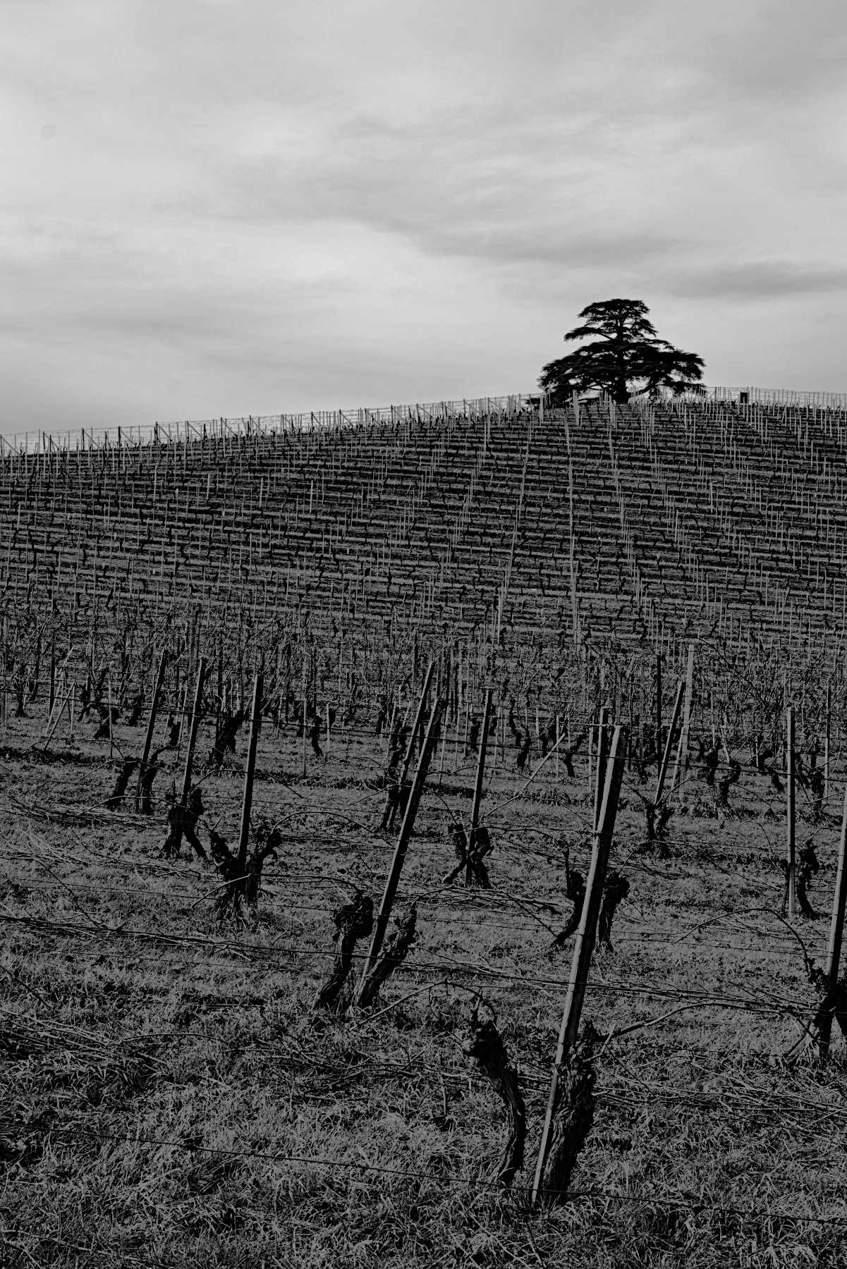 Buona composizione ben ripartita negli spazi, la linea dello sguardo parte dal filare in primo piano per giungere diretta sull'albero.