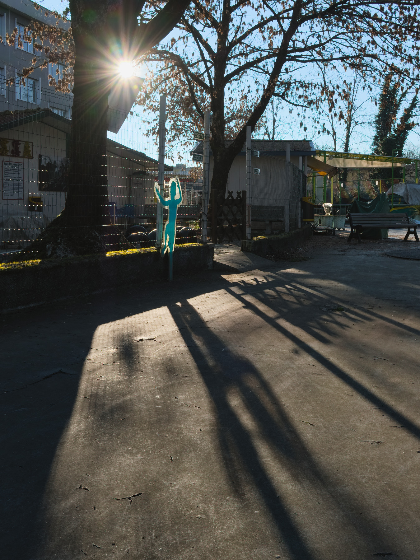 Pensare ad un bimbo 'ombra',un ectoplasma e pensare alla sua giocosa vivacità fermata in una sagoma in un deserto inverno è terribilmente triste e specchio dei tempi ma il sole stellato che l'attraversa è motivo di speranza .