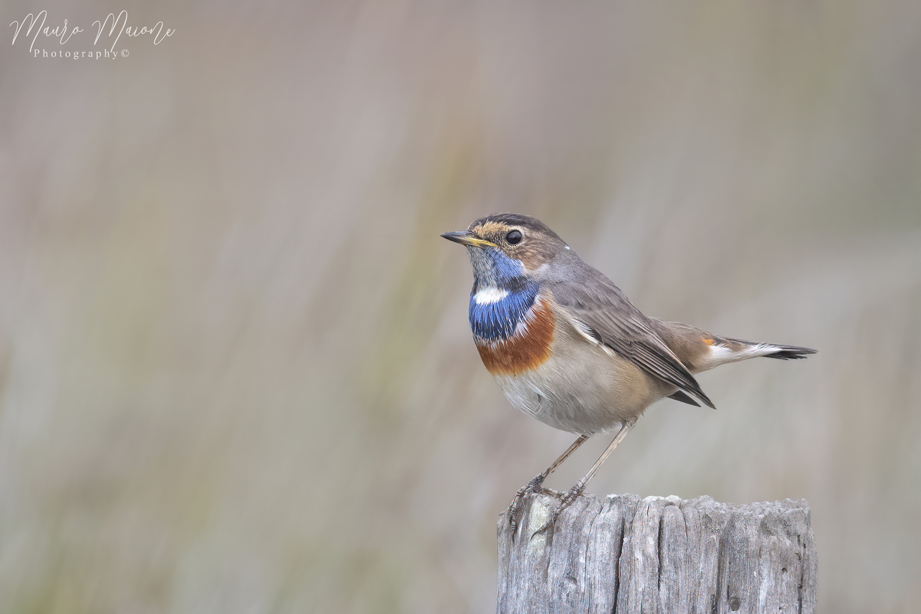 Magnifico il setaggio della fotocamera che grazie allo sfocato dello sfondo ci permette di apprezzare i dettagli e gli stupendi colori del pettazzurro.