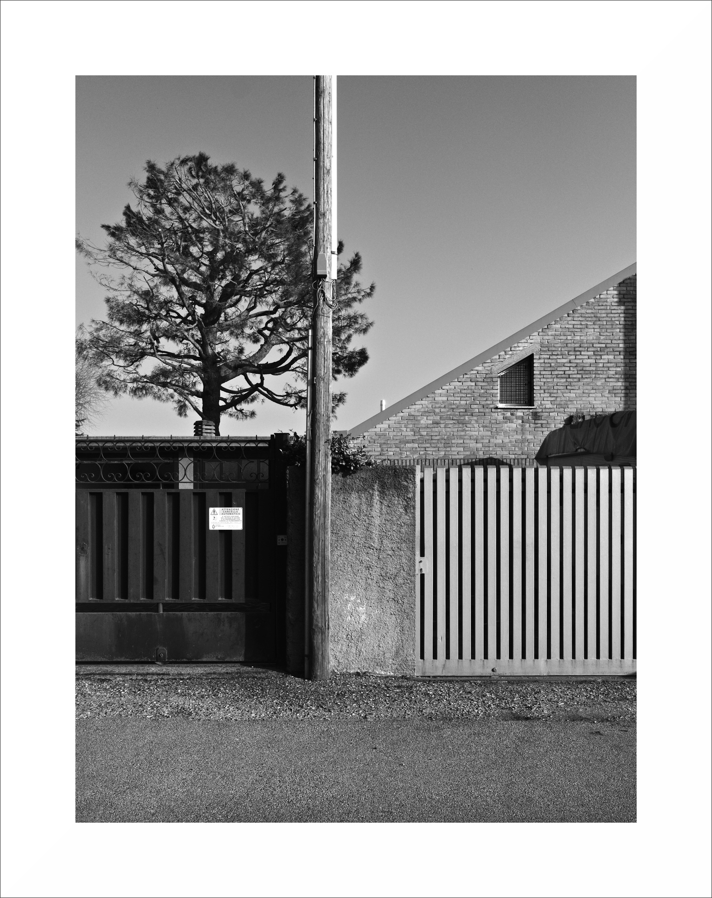 | Quasi due foto in una con il palo come confine comune. Ottime le geometrie scovate e la presenza dei due cancelli di tonalità opposte. Un saluto, guido |