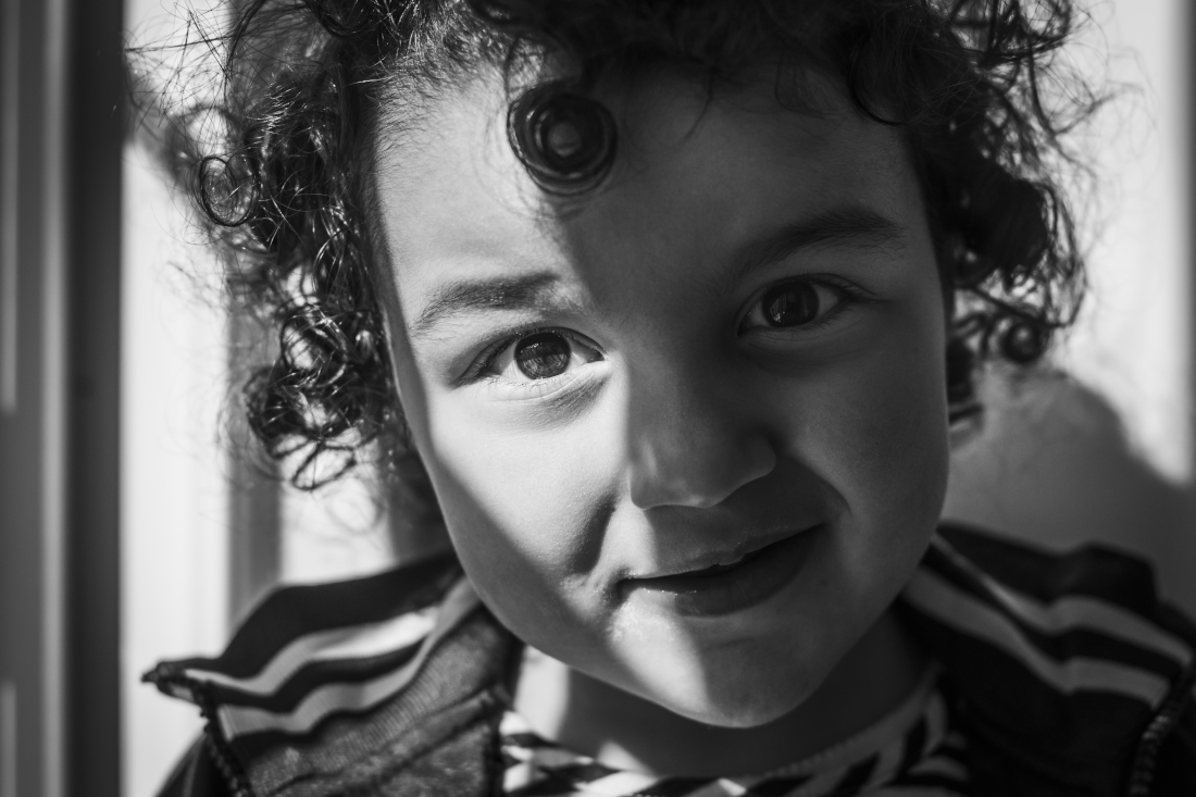 Questo sorrisino riempe il cuore... Furbizia e dolcezza,un pizzico di spavalderia in quei boccoletti spettinati e un po' ribelli, ma soprattutto leggerezza e spensieratezza, in quel suo sguardo complice e pieno di fiducia .Giochi di luce e ombre per portarlo fuori dalla banalità..un bel ritratto . Ciao