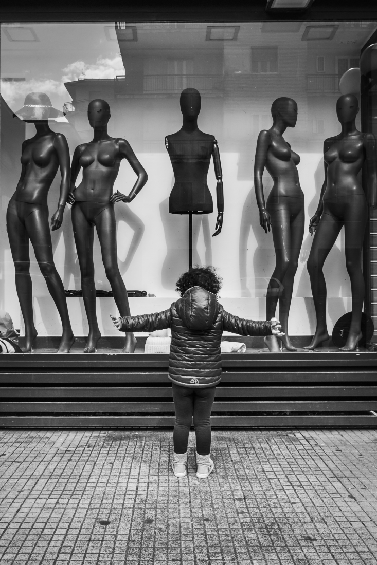 Che bella foto. Il momento restituisce un rapporto tra la bimba ed i manichini stupendo . Ok!