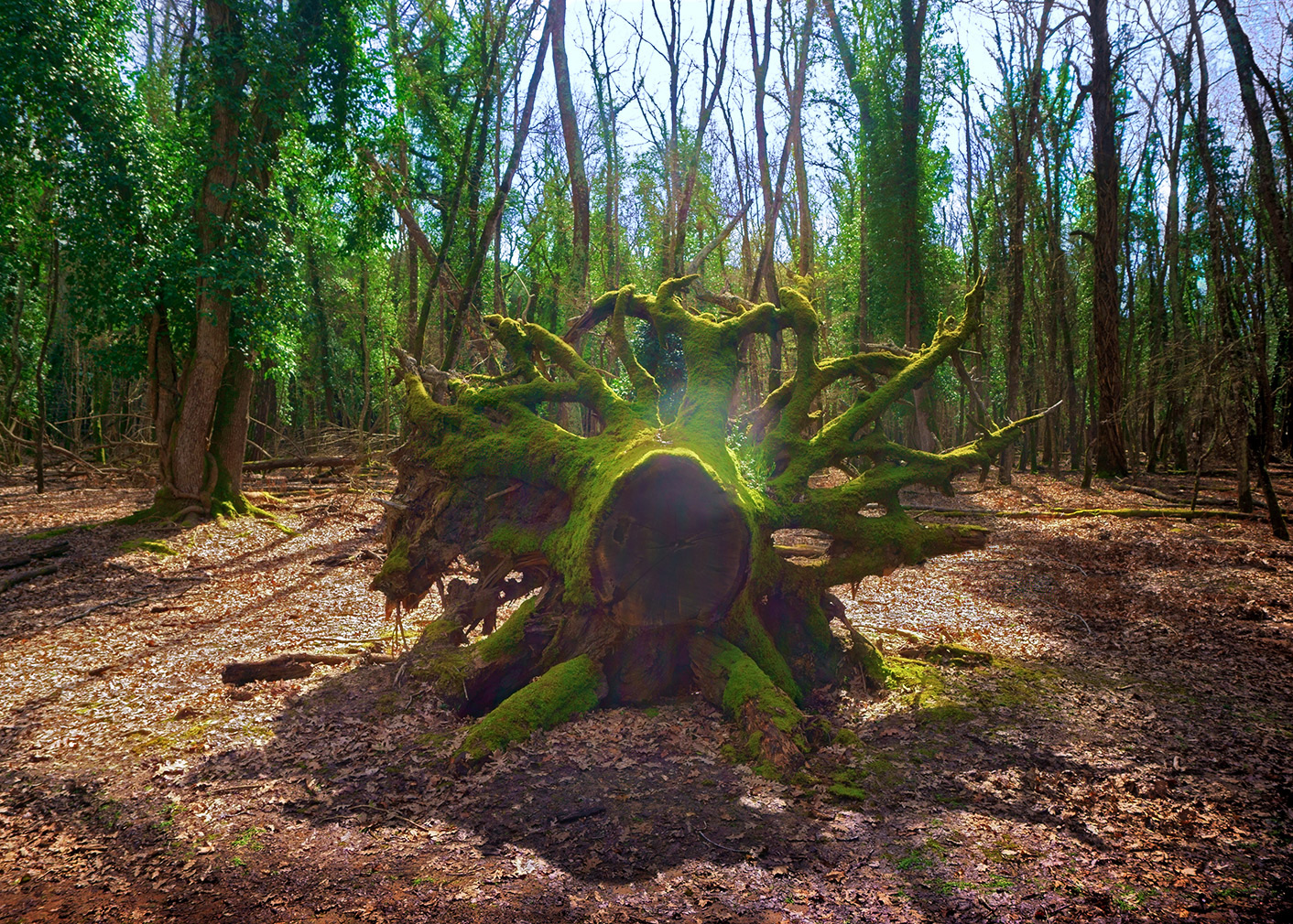 Con questa inquadratura centrale mi ricorda la testa della Medusa… Un tronco-radice, diventato bellissimo per la presenza del muschio così brillante… Ottima immagine, in cui hai gestito molto bene il difficile controluce, mantenendo delle bellissime tonalità di verde. Complimenti