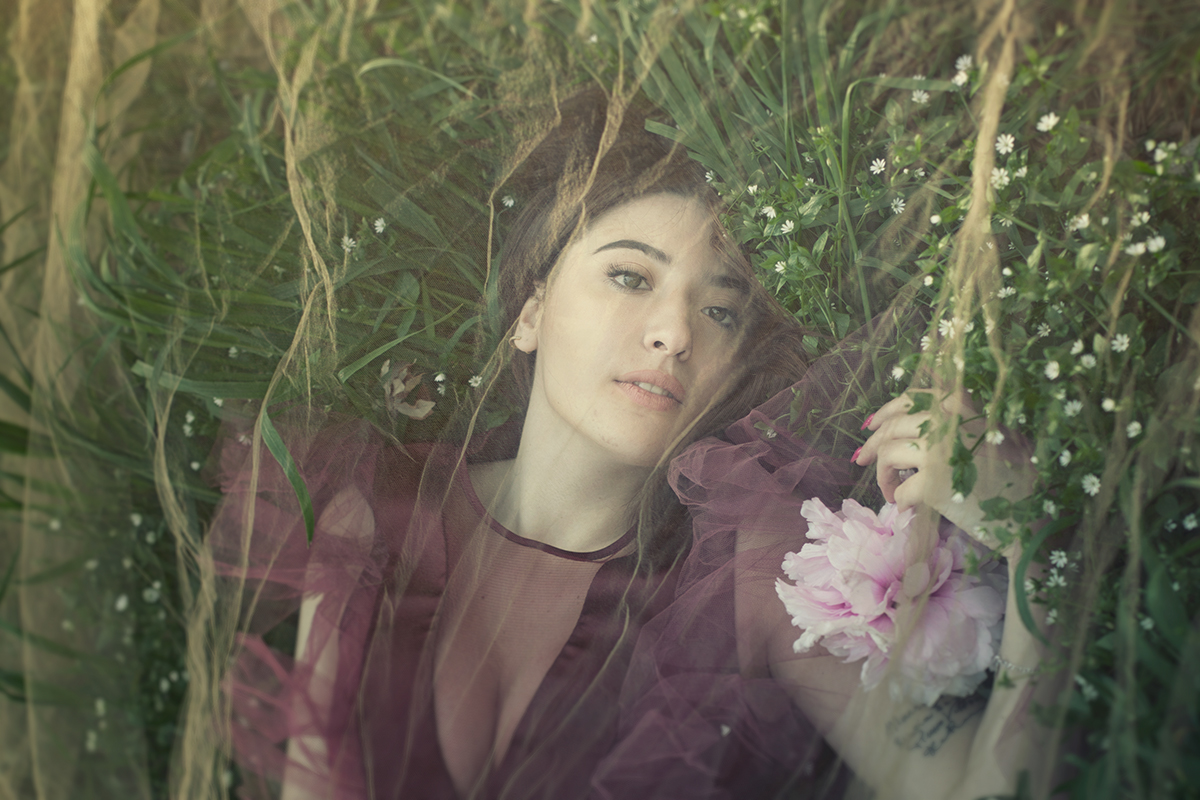 Ovviamente hai collocato questa poetica immagine nella dimensione onirica, posizionando il soggetto in un rifugio naturale e guidando la posa e l'espressione verso una sorta di rimembranza estatica. La post produzione è coerente allo scopo; luce soffusa, colori slavati, presenza di due soli colori caratterizzati da un dualismo caldo/freddo.