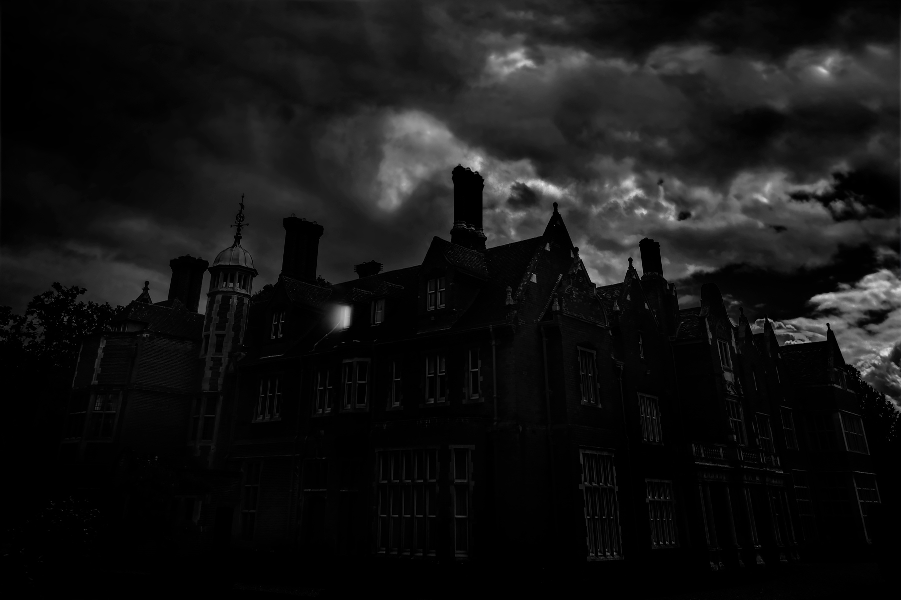Un bn cupo per questa magione inquietante e spettrale con l'unica finestra che emana una luce più sinistra che consolatoria.Immagine molto suggestiva ottimamente realizzata. Ciao,Sergio.