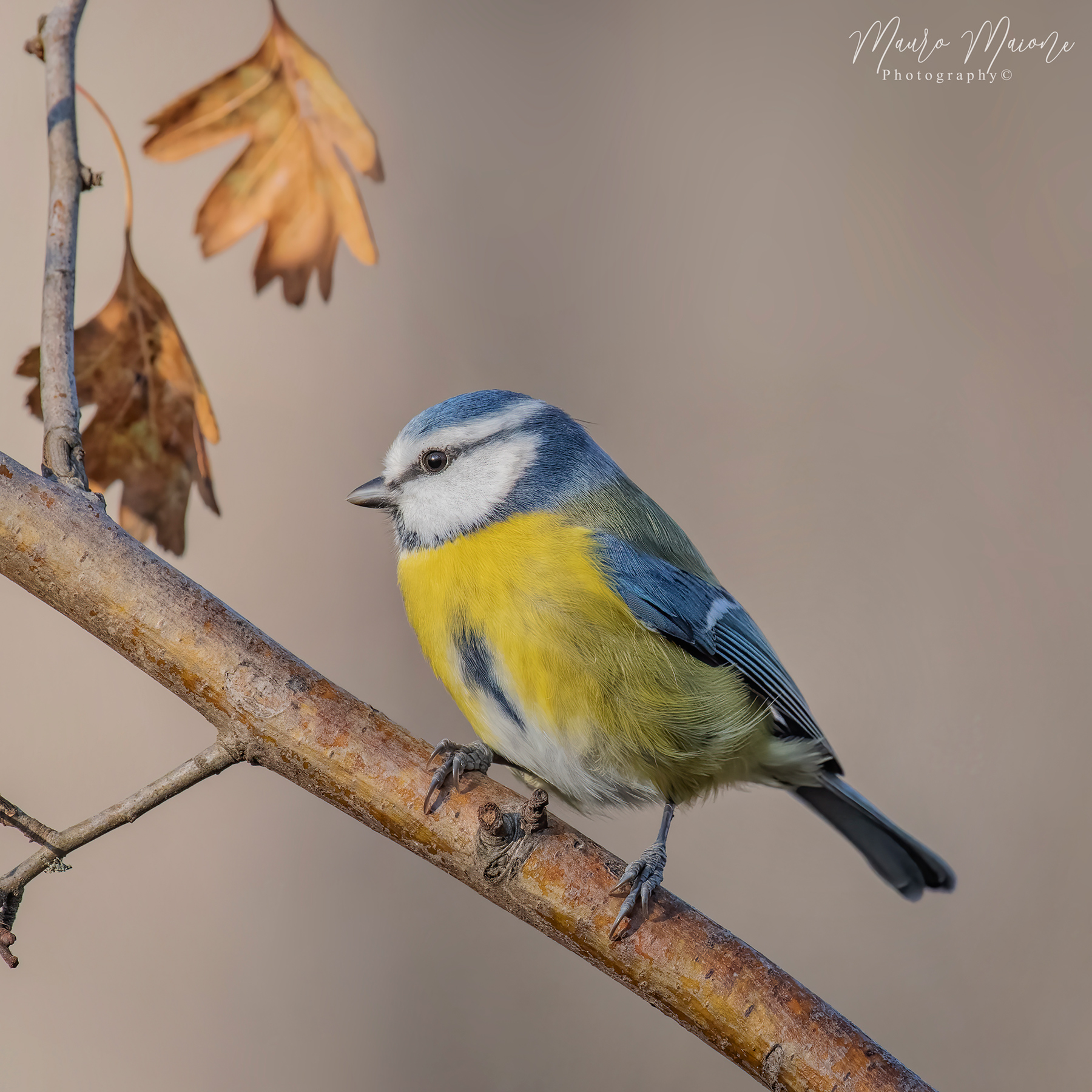 Molto piacevole questo accostamento di colori vivaci della cinciarella con quelli sobri del contesto.